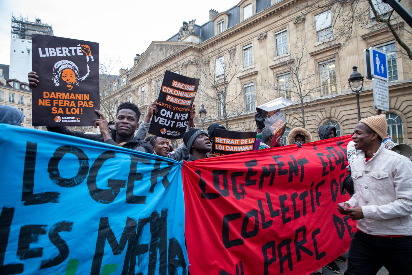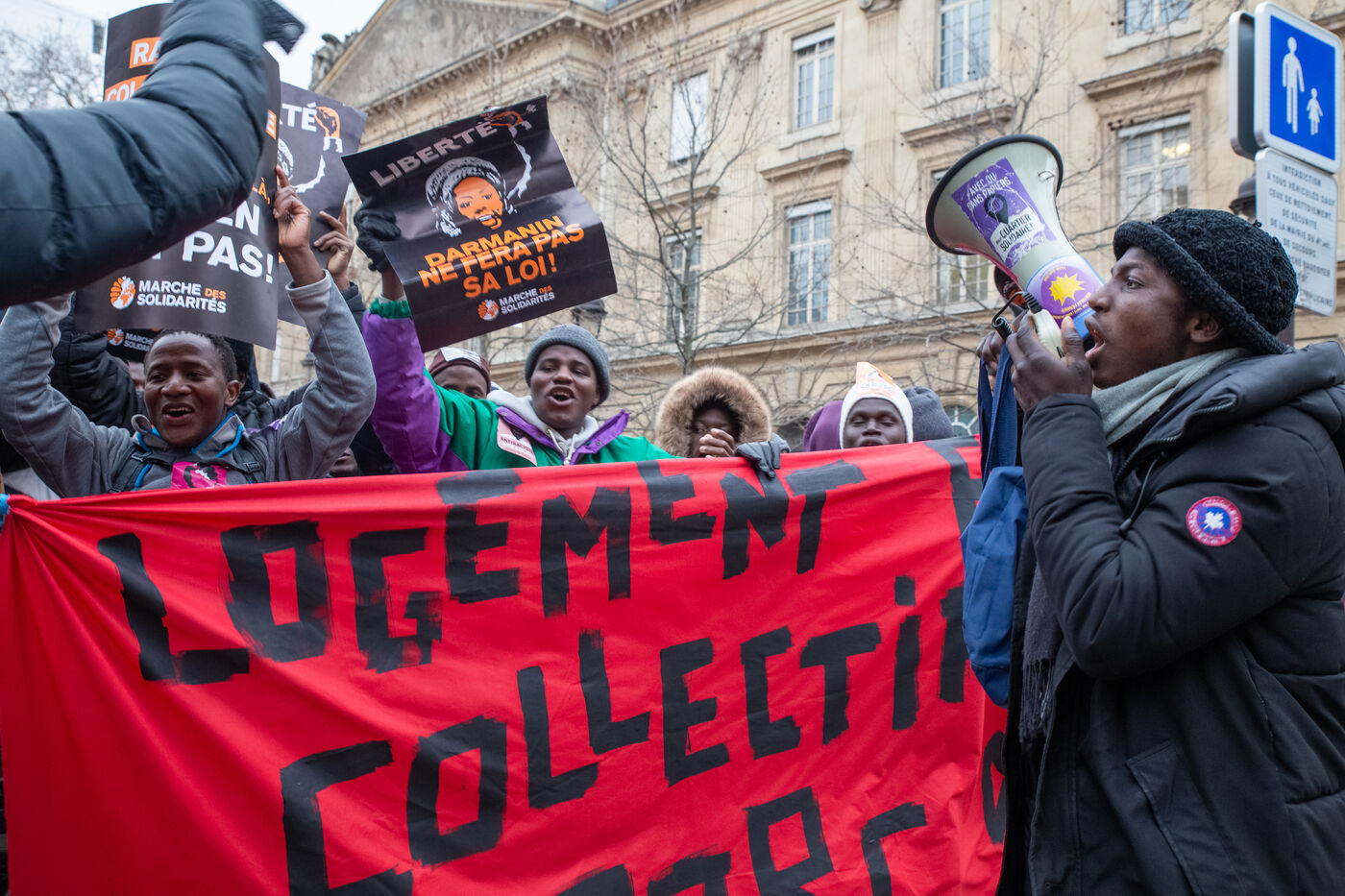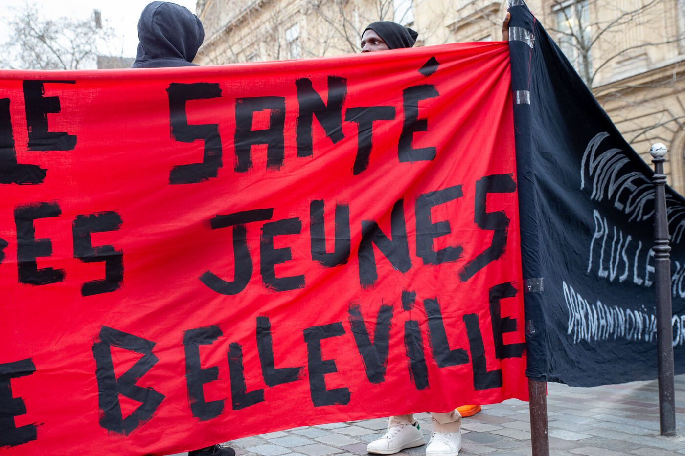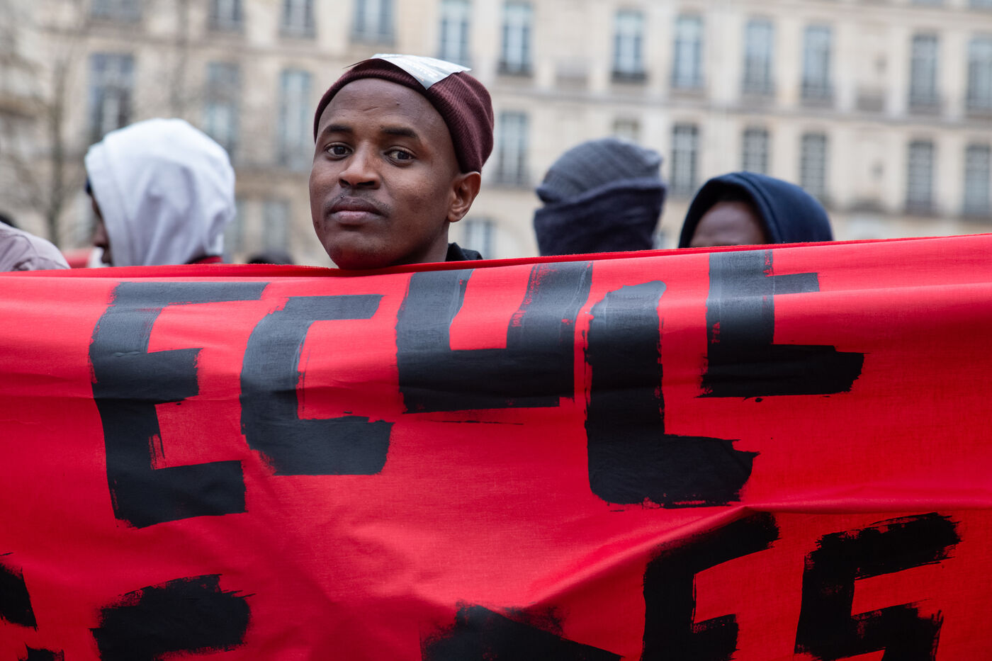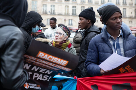 France, Paris, place Baudoyer, 6 February 2024. Organised by the Collectif des Jeunes du Parc de Belleville, with the support of 20eme Solidaire avec tou-te-s les migrant-e-s and SUD Education Paris. Key words: Housing! Schools! Health! Documents! The young unaccompanied foreign minors (MENA), who have been fighting for several weeks, are demanding a meeting with a delegation from Paris City Hall to assert their right to shelter.