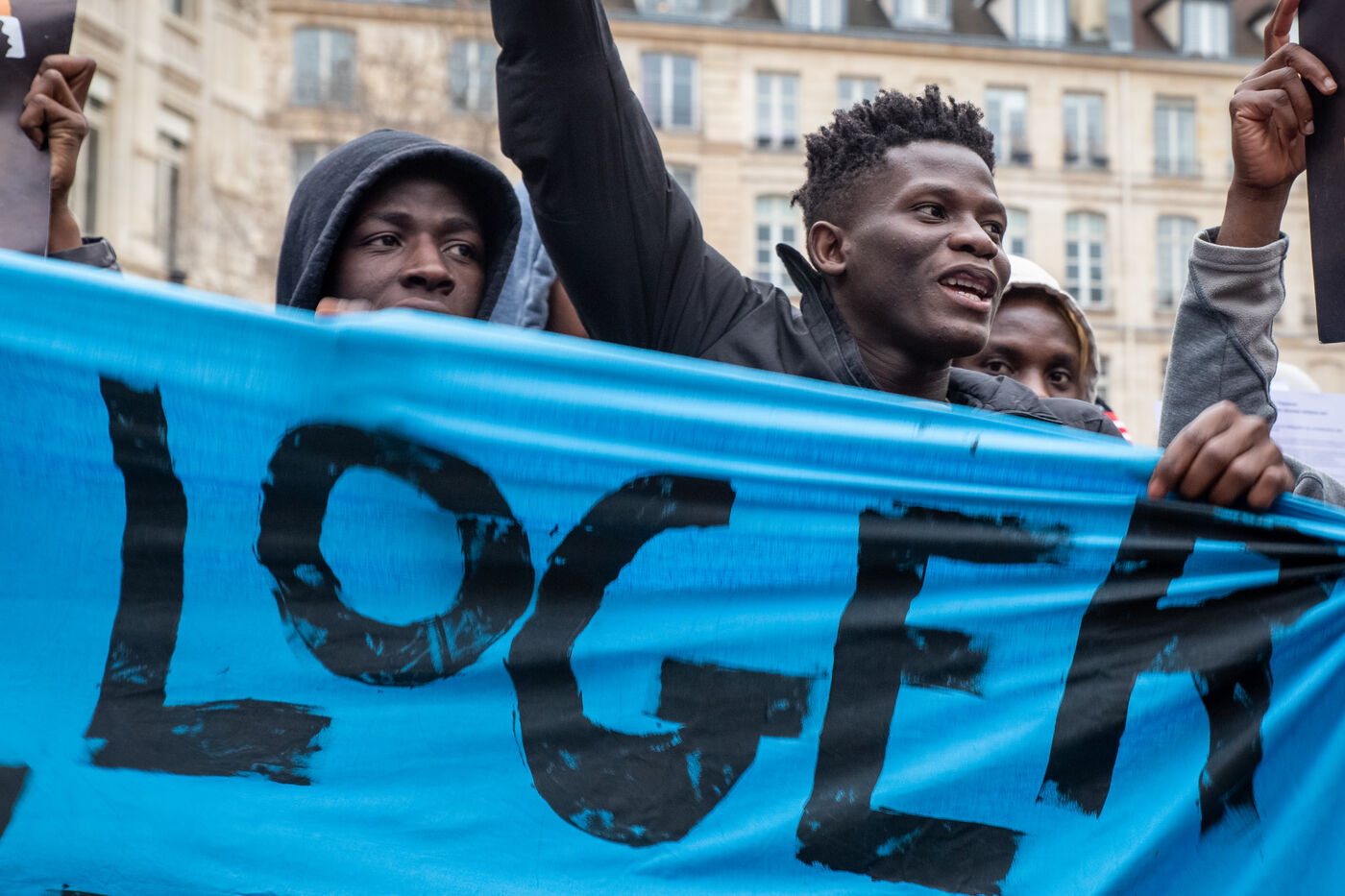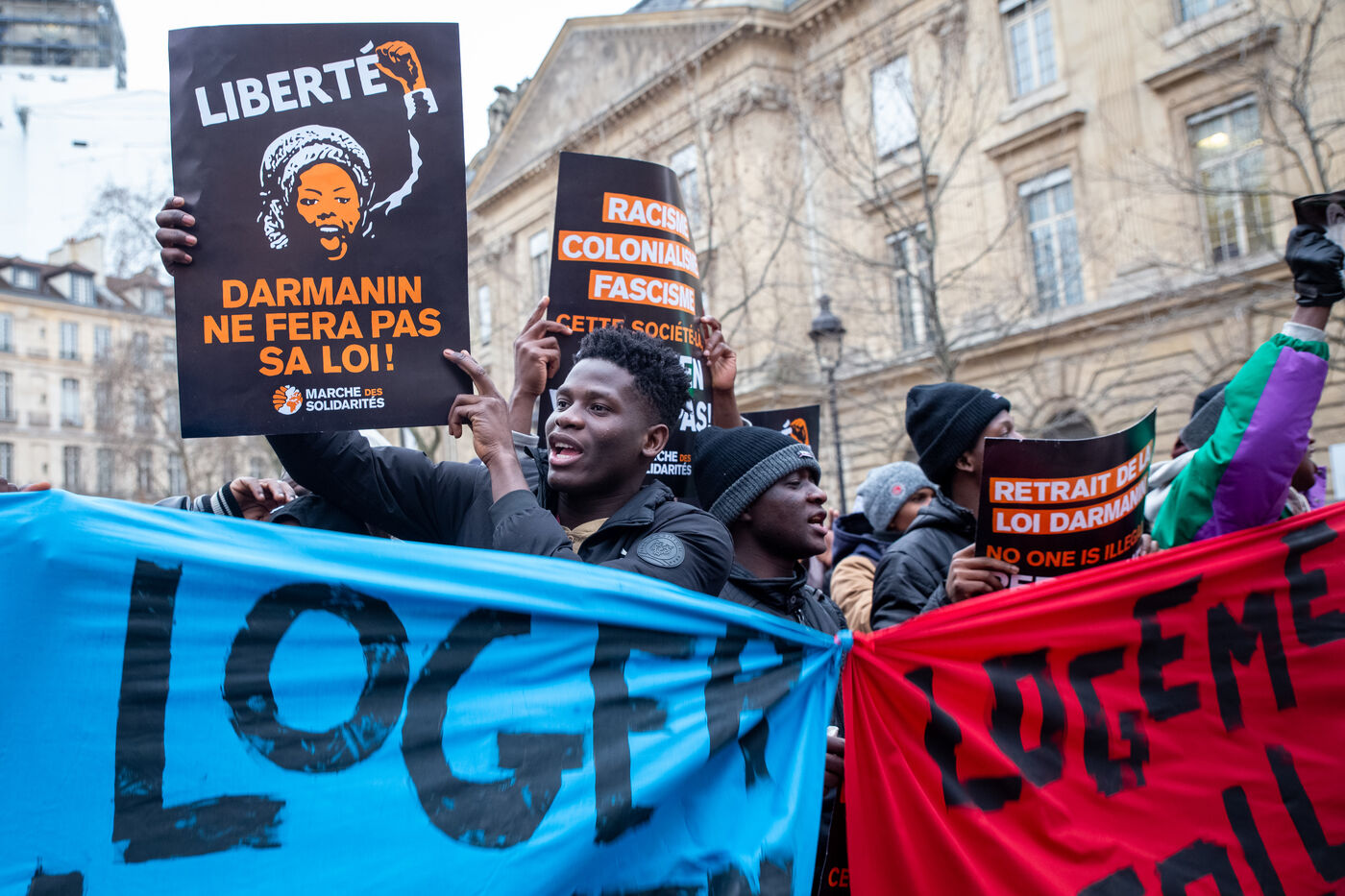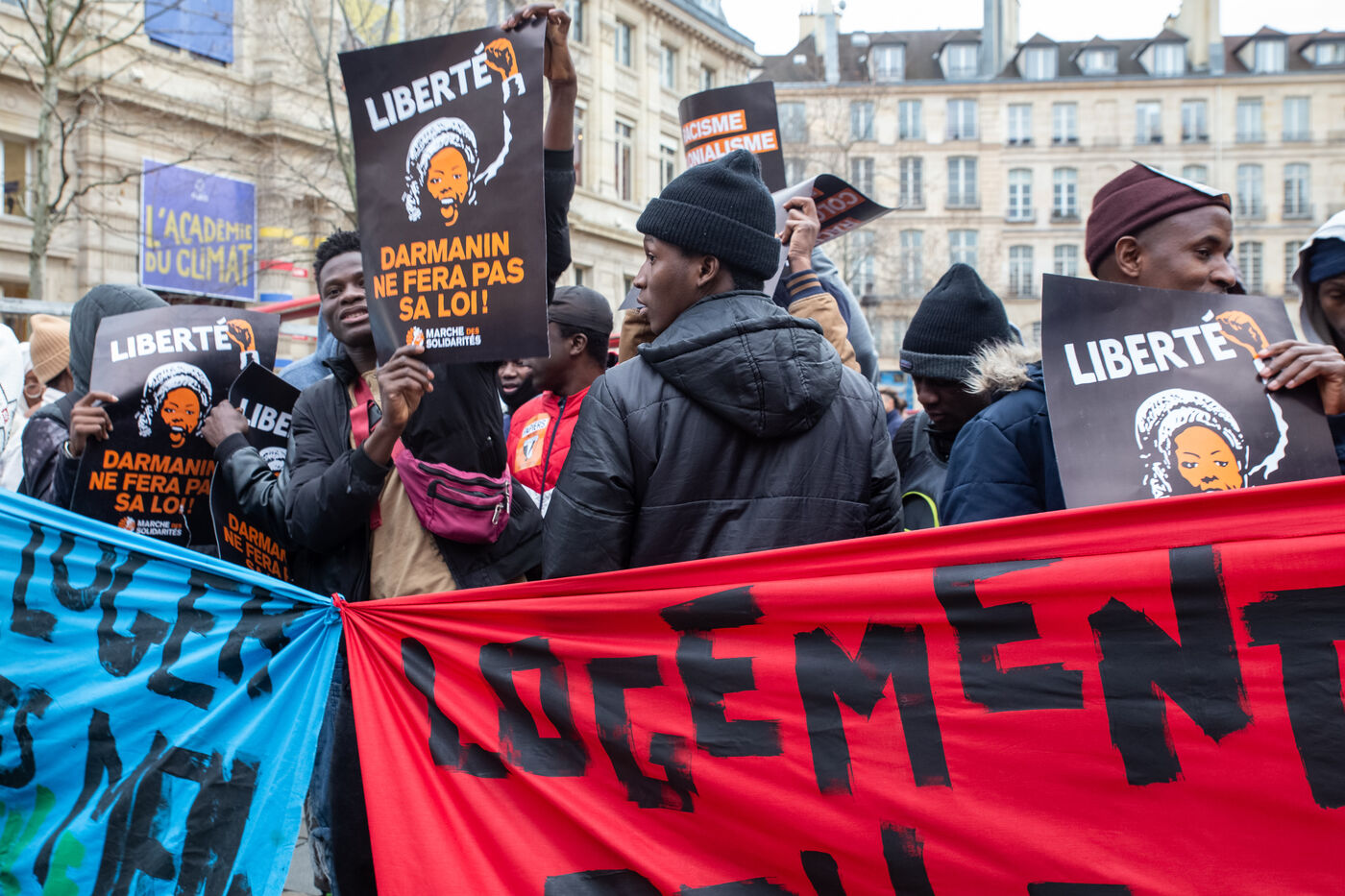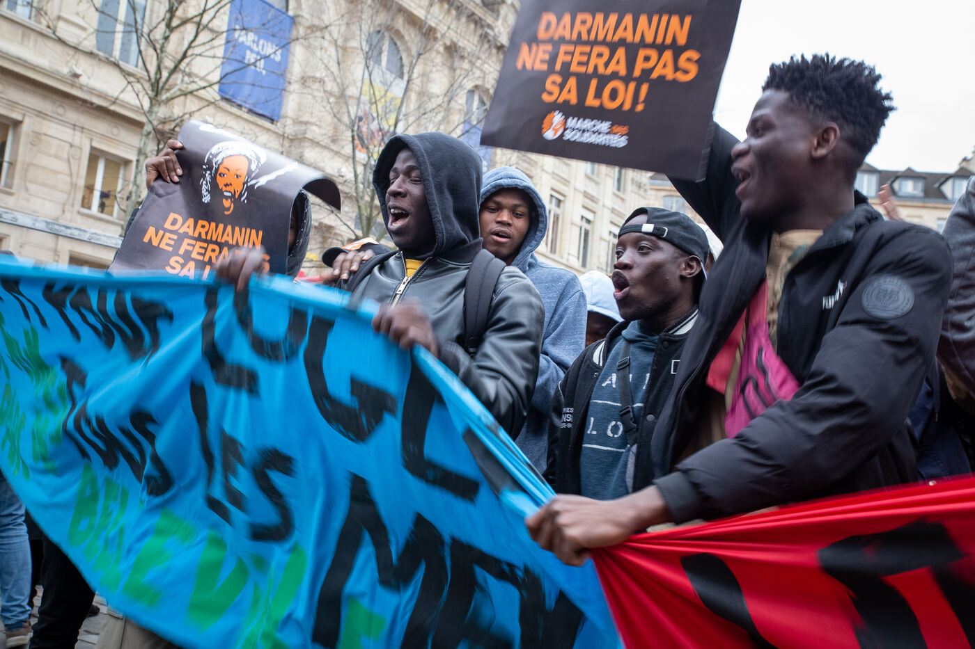 France, Paris, place Baudoyer, 6 February 2024. Organised by the Collectif des Jeunes du Parc de Belleville, with the support of 20eme Solidaire avec tou-te-s les migrant-e-s and SUD Education Paris. Key words: Housing! Schools! Health! Documents! The young unaccompanied foreign minors (MENA), who have been fighting for several weeks, are demanding a meeting with a delegation from Paris City Hall to assert their right to shelter.