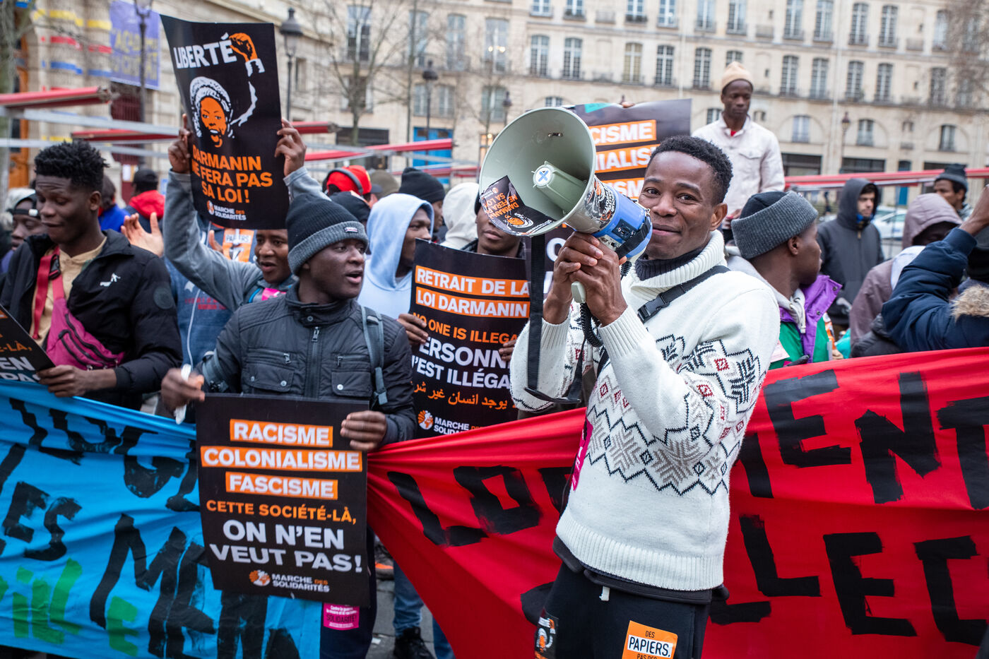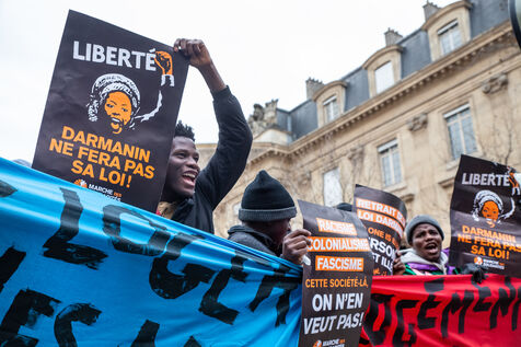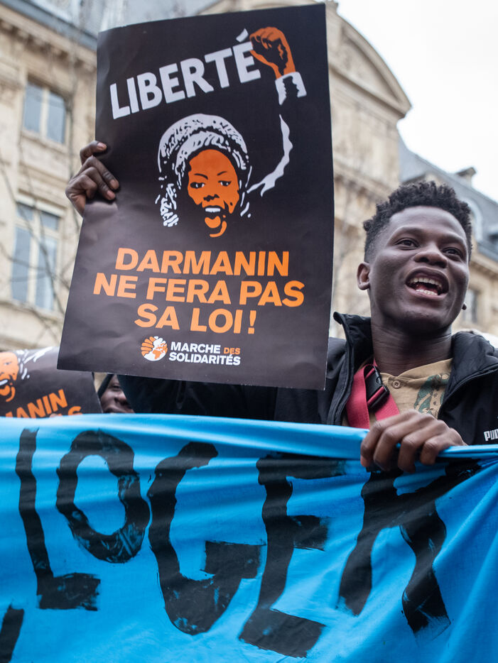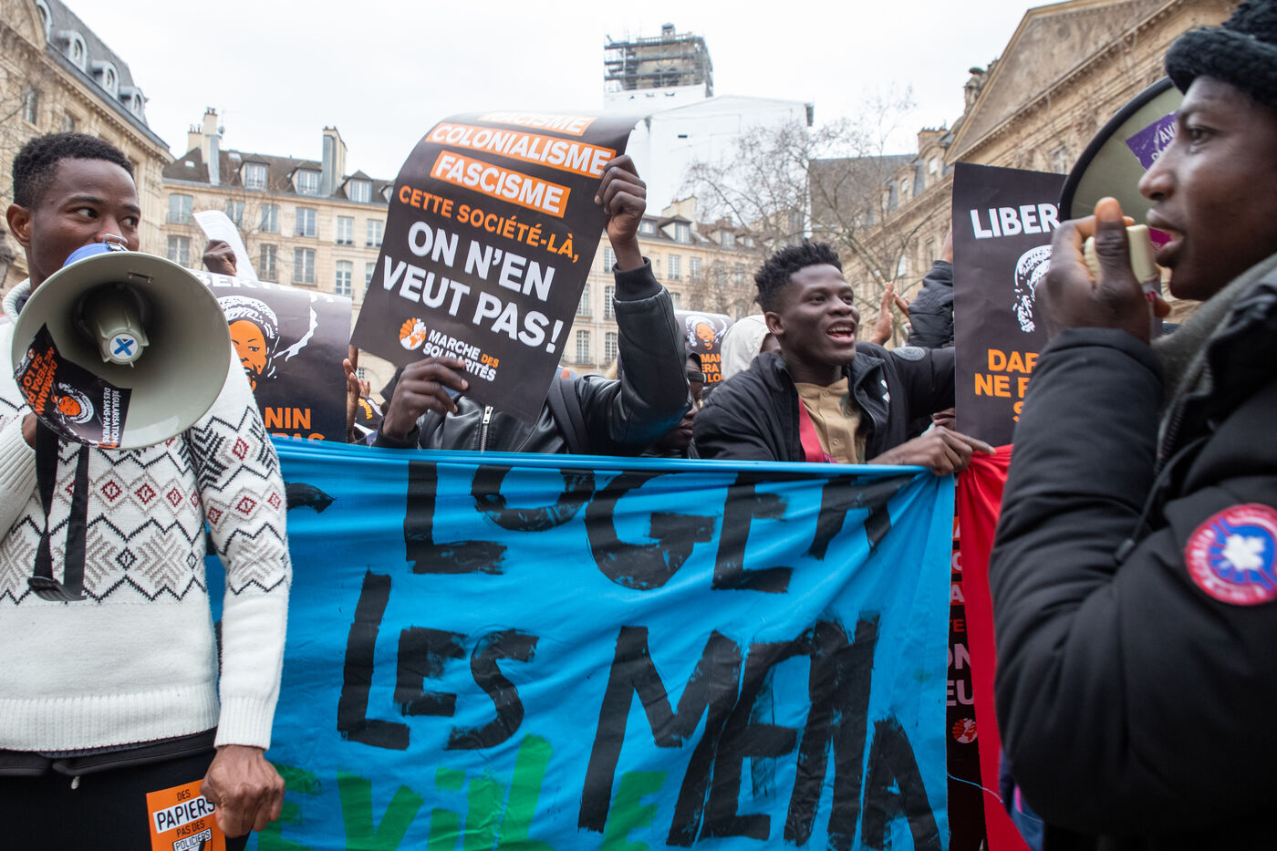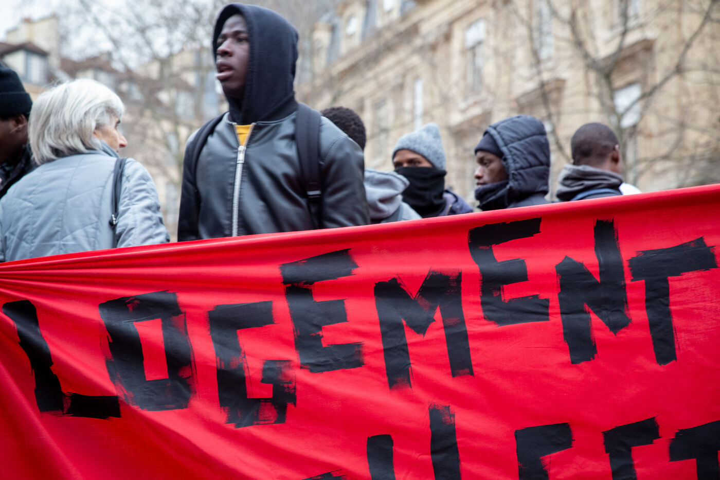 France, Paris, place Baudoyer, 6 February 2024. Organised by the Collectif des Jeunes du Parc de Belleville, with the support of 20eme Solidaire avec tou-te-s les migrant-e-s and SUD Education Paris. Key words: Housing! Schools! Health! Documents! The young unaccompanied foreign minors (MENA), who have been fighting for several weeks, are demanding a meeting with a delegation from Paris City Hall to assert their right to shelter.