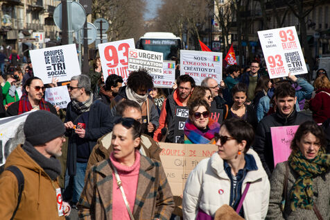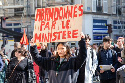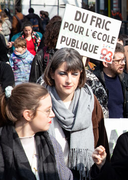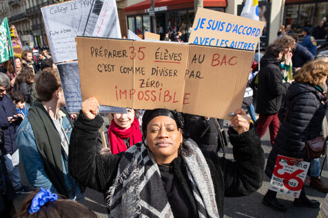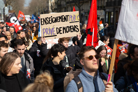 France, Paris, 7 March 2024. Demonstration in Paris by teachers, education assistants, parents and pupils from Seine-Saint-Denis. Calling for an emergency plan for France's poorest department, they are protesting against the use of streaming. Pointing out that schools are in an unhealthy state, they are calling for more human and financial resources.