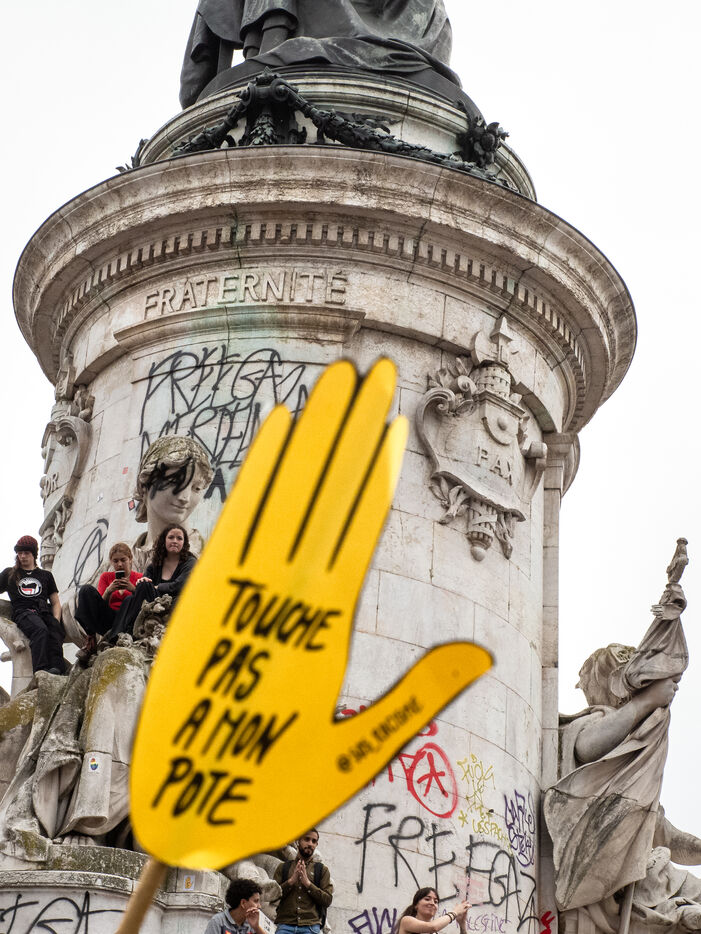 FRANCE, Paris, Place de la République, July 3, 2024. Rassemblement pour un Front democratique contre l'extreme droite organized by hundreds of independent media, associations and trade unions, four days before the second round of early parliamentary elections.
