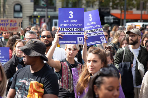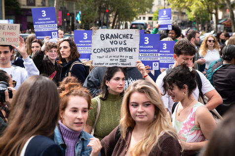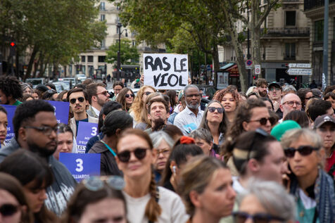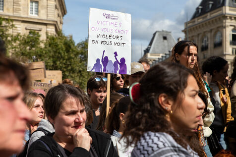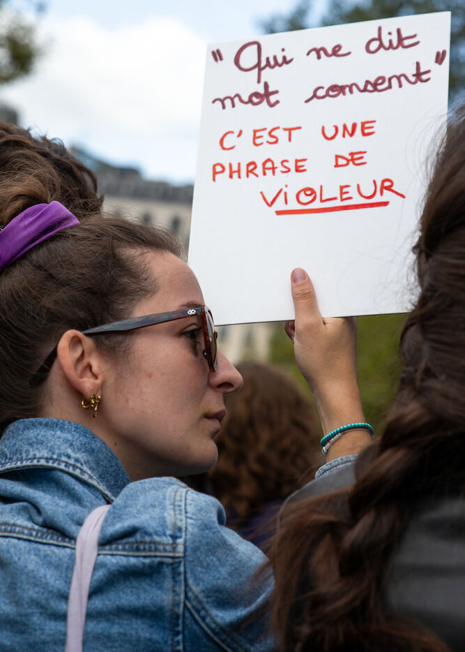 France, Paris, September 14, 2024. Rally in support of Gisele Pelicot, plaintiff in the Mazan rape case, and victims of sexual violence.
