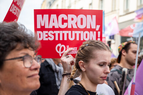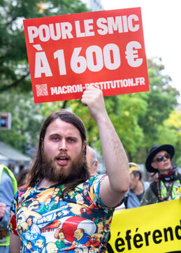 France, Paris, 21 September 2024. Demonstration called by youth organisations (students and high school pupils), supported by La France Insoumise (LFI) and the ecologists. Following the appointment of Michel Barnier as Matignon, the demonstrators came to denounce President Macron's ‘coup de force’ and his choice of a prime minister contrary to the results of the early parliamentary elections.
