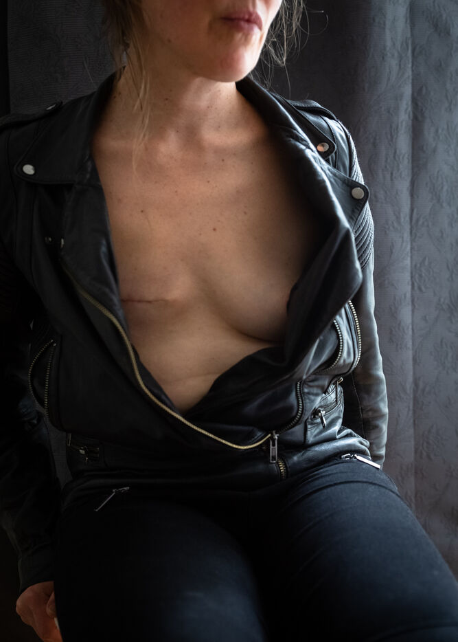 In early February 2024, at the age of 45, I was diagnosed with breast cancer... After the moment of shock, the various stages of denial, anxiety, paranoia and guilt, I finally let go and followed the treatment protocol... For me, it would be a total mastectomy of the right breast with hormone therapy for 5 years. I accept this idea quite easily, as I'm so relieved to be avoiding chemotherapy. After the operation and the convalescence period, with a little more distance between myself and what had just happened to me, I began to ask myself questions, particularly about my relationship with my body, my confidence in it, my health, my strength, my femininity... Like most women who have been through this, I was immediately told about breast reconstruction, which would be fully covered. I later learnt that only 30% of women opt for this type of reconstructive surgery. As I'm still a few months away from this appointment with my body, I'm also wondering... This series is an attempt to put these reflections into images.