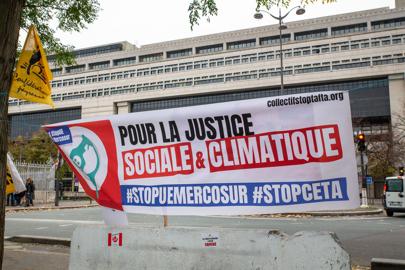France, Paris, November 13, 2024. Rally against the EU-Mercosur free-trade agreement, in front of the Ministry of Finance on the initiative of Confederation paysanne and Collectif Stop CETA-Mercosur.