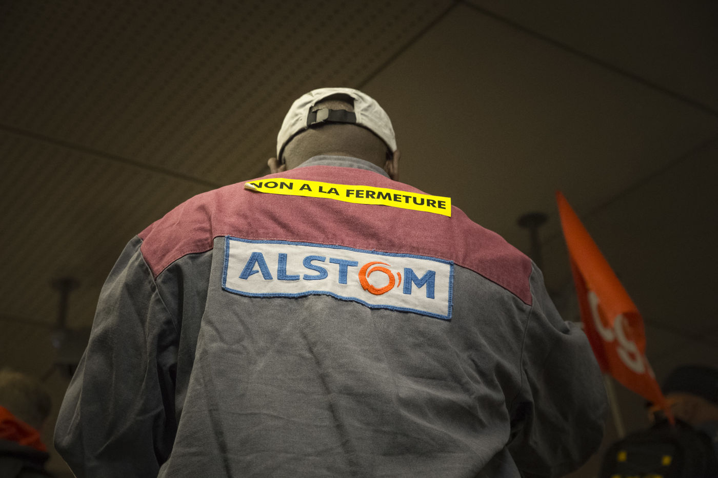 Rassemblement de salariés Alstom au siège de St Ouen.