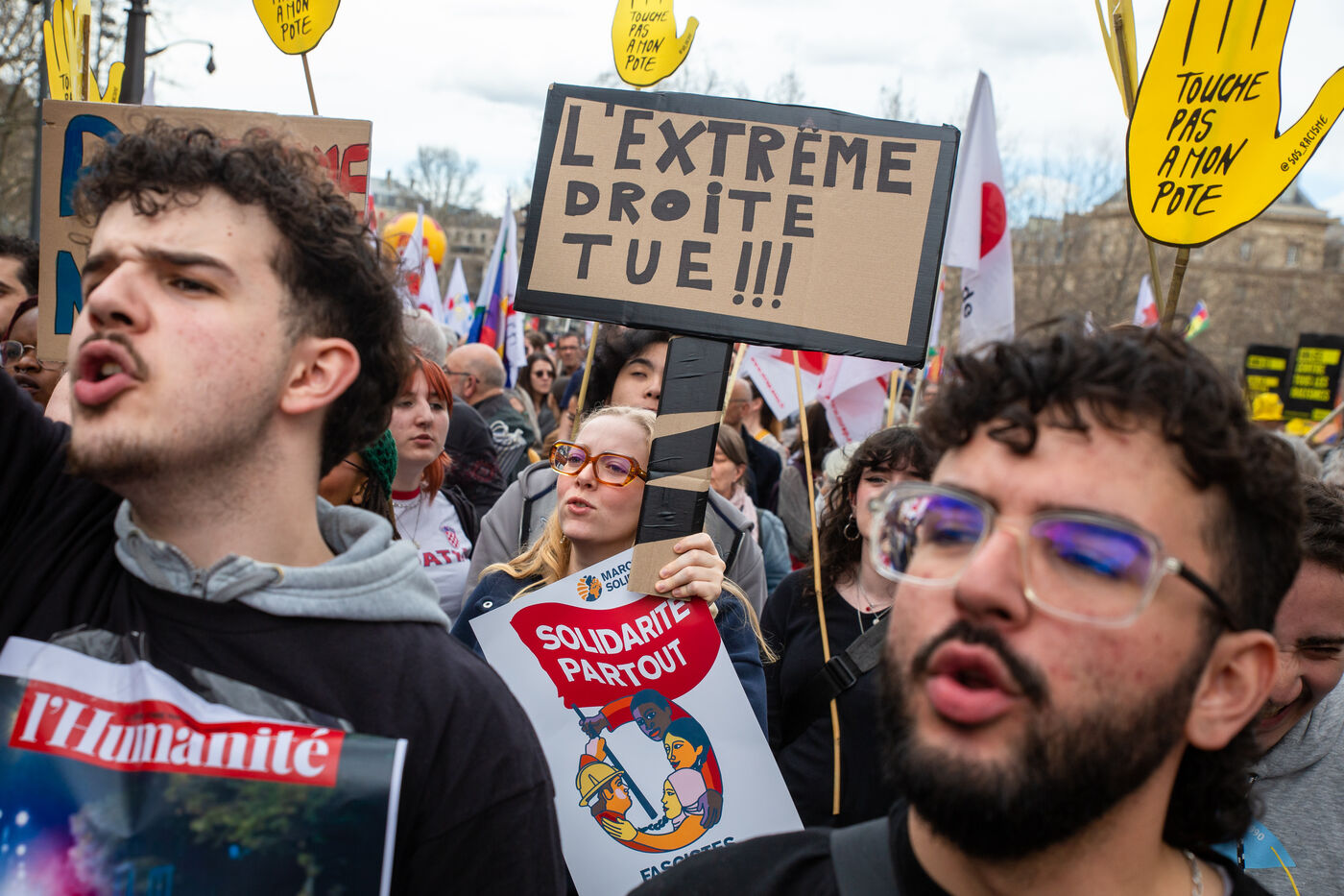 FRANCE, Paris, le 22 mars 2025. Pour la Journee internationale contre le racisme et le fascisme plusieurs associations, syndicats, collectifs et partis politiques avaient appeler a manifester pour alerter sur la montee de l extreme droite et porter un projet de societe humaniste, solidaire et egalitaire.
