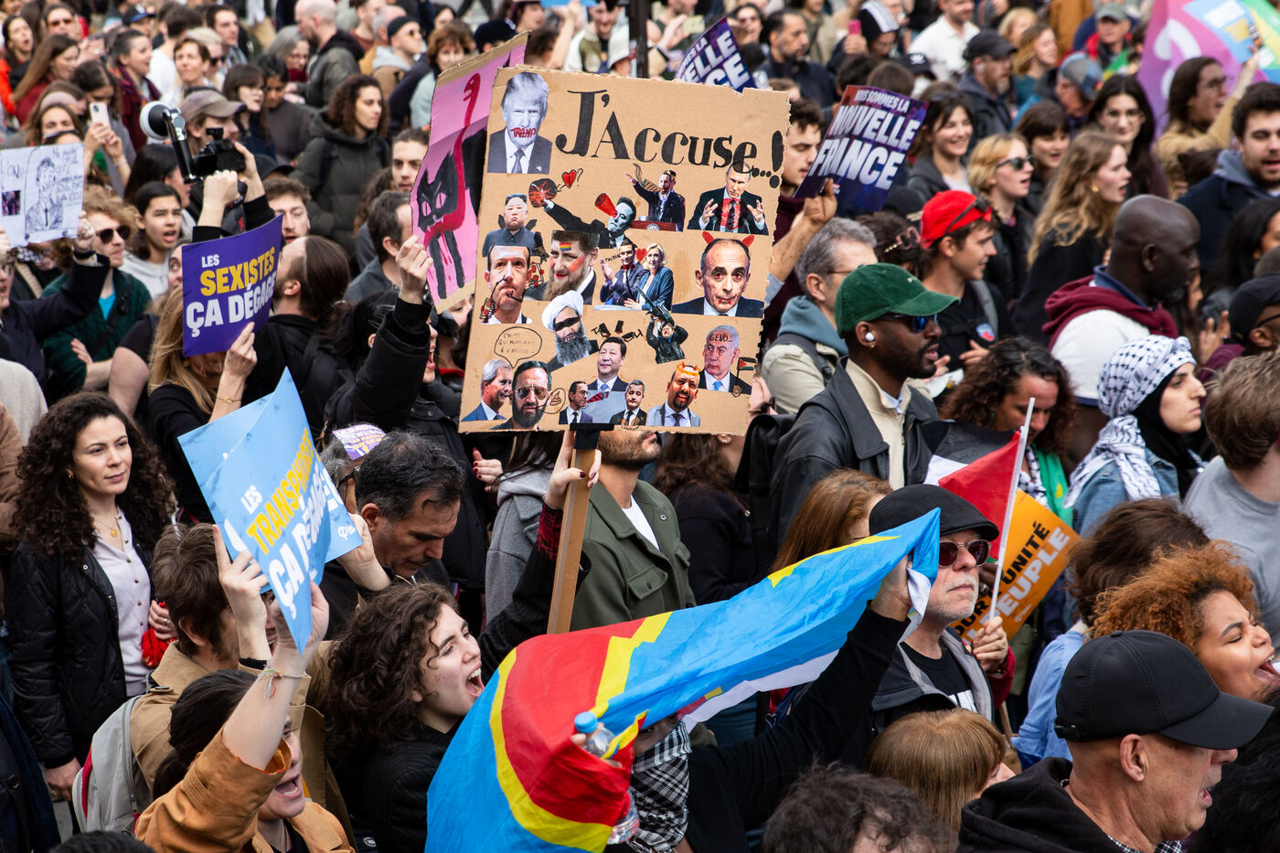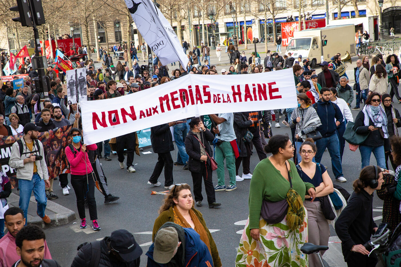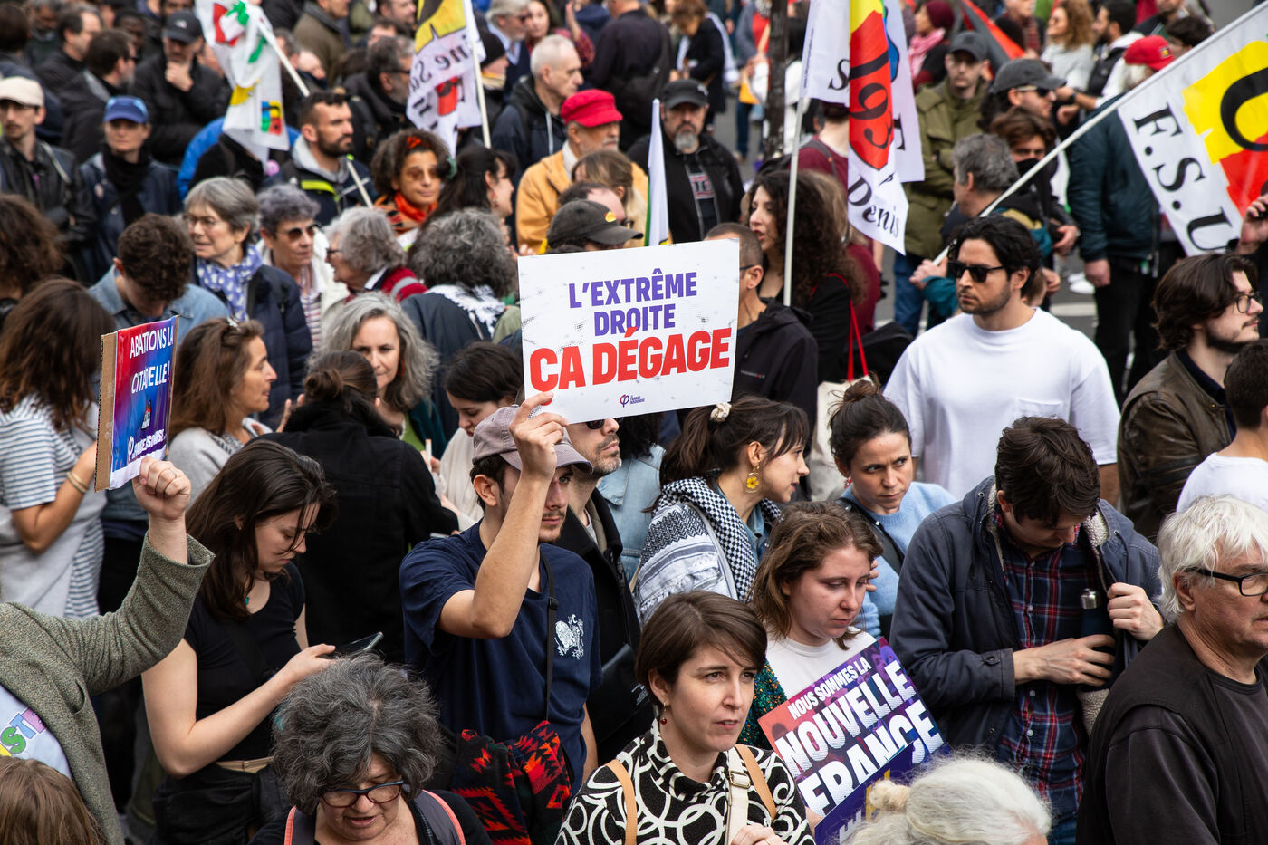 FRANCE, Paris, March 22, 2025. For the International Day Against Racism and Fascism, several associations, unions, collectives and political parties had called for a demonstration to warn of the rise of the extreme right and to promote a project for a humanist, supportive and egalitarian society.