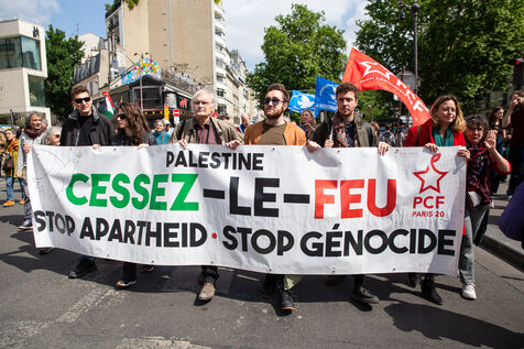 FRANCE, Paris, May 17, 2025. Demonstration in support of the Palestinian people and commemoration of the Nakba, which means “catastrophe” and refers to the Palestinian exodus following the creation of the State of Israel and the defeat of the Arab countries in the first Arab-Israeli war in 1948. A duty to remember for pro-Palestinian activists, it aims to keep Palestine in the public debate and influence diplomatic decisions, notably for the recognition of the Palestinian state.