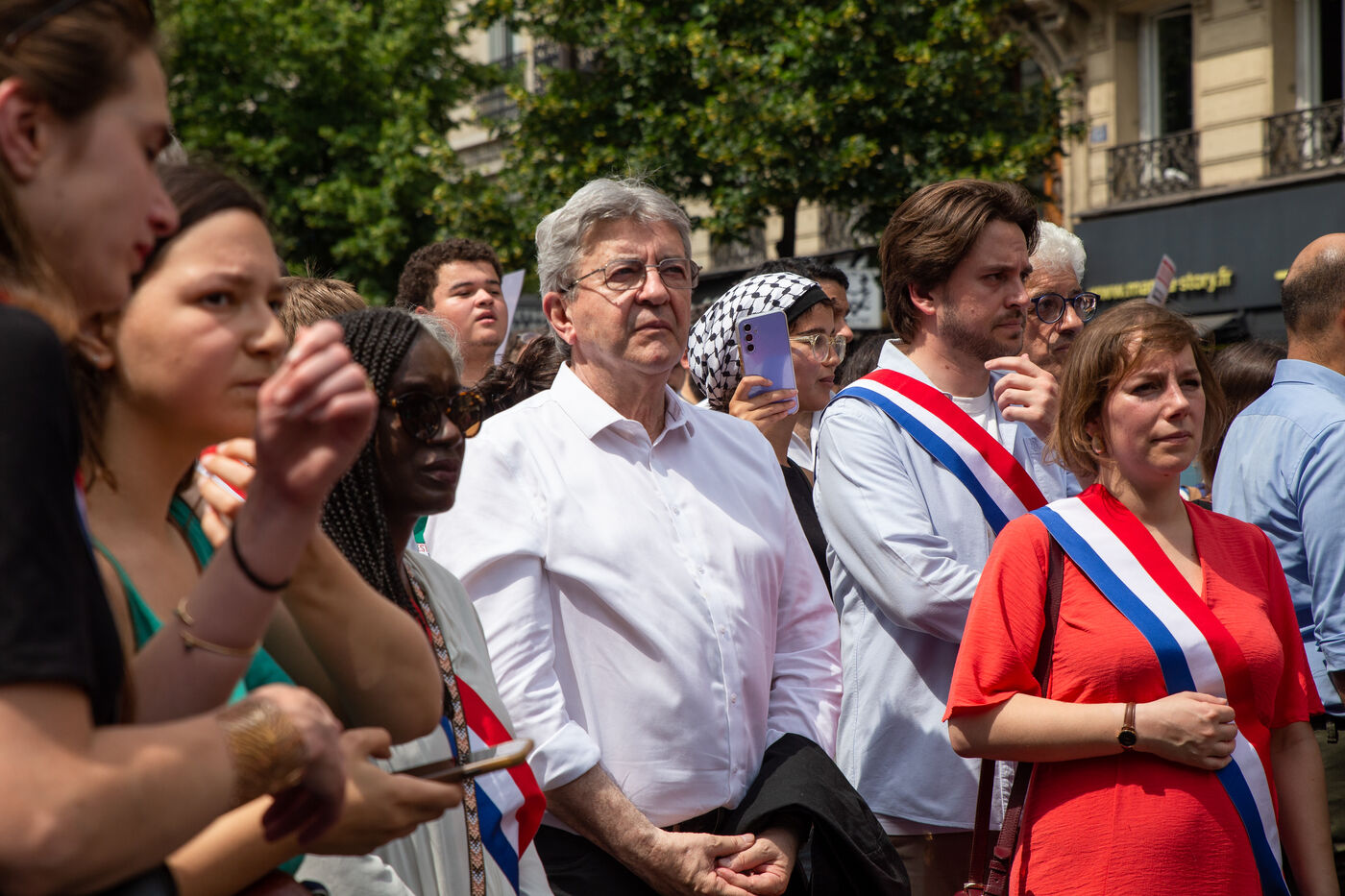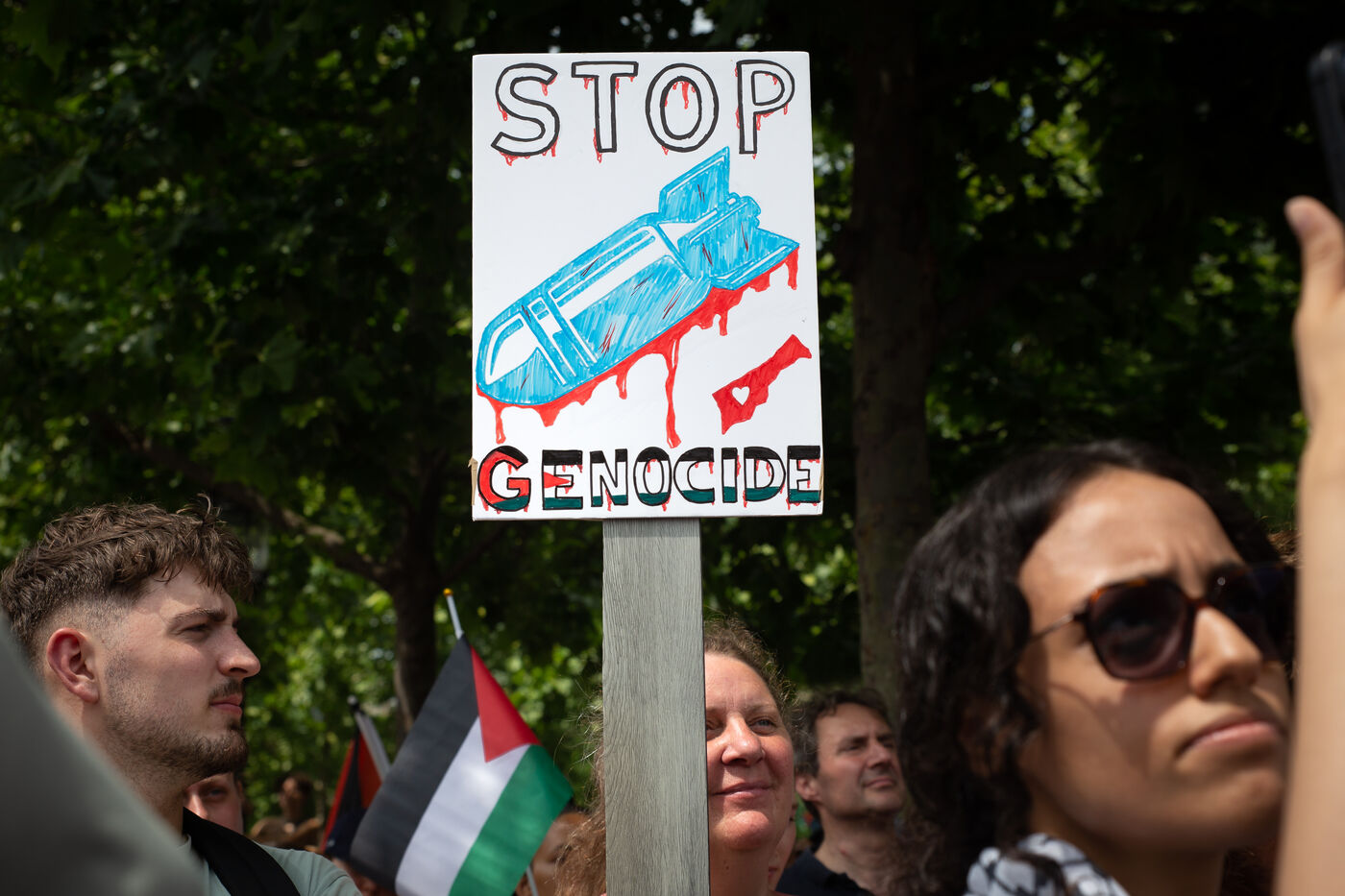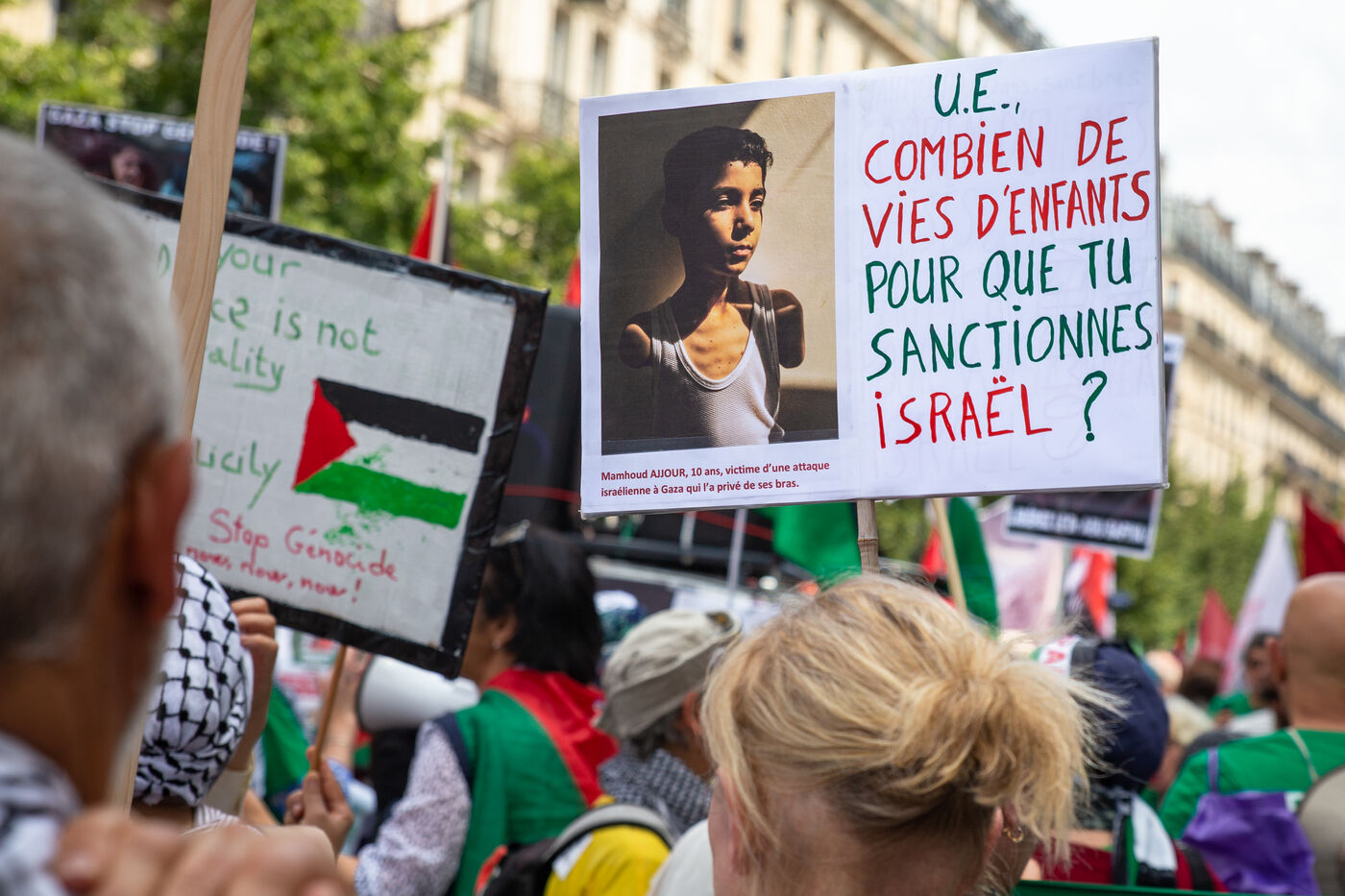 France, Paris, June 14, 2025. Mobilization for Palestine at the call of an inter-union coalition bringing together CFDT, CGT, Unsa, Solidaires, and FSU, the National Collective for a Just and Lasting Peace between Palestinians and Israelis (CNPJDPI), and left-wing parties (LFI, PS, PCF, EELV). Denouncing the abuses committed in Gaza (bombing of civilians, forced displacement, starvation as a weapon of war), and pointing to the genocidal intentions of the Israeli government, the organizers are calling for an immediate ceasefire and unhindered access for humanitarian aid.