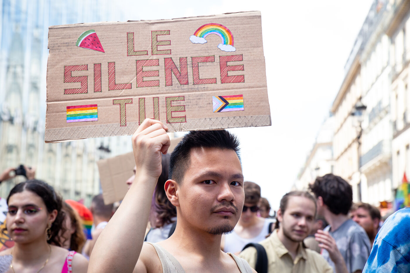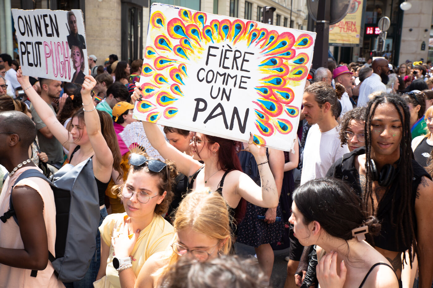 FRANCE, Paris, June 28, 2025. Pride March, a political demonstration and protest for the rights and visibility of LGBTQIA+ people, a celebration of tolerance and diversity in a festive and militant atmosphere.