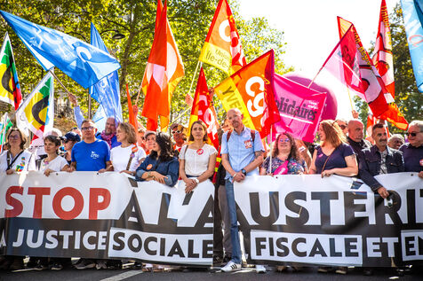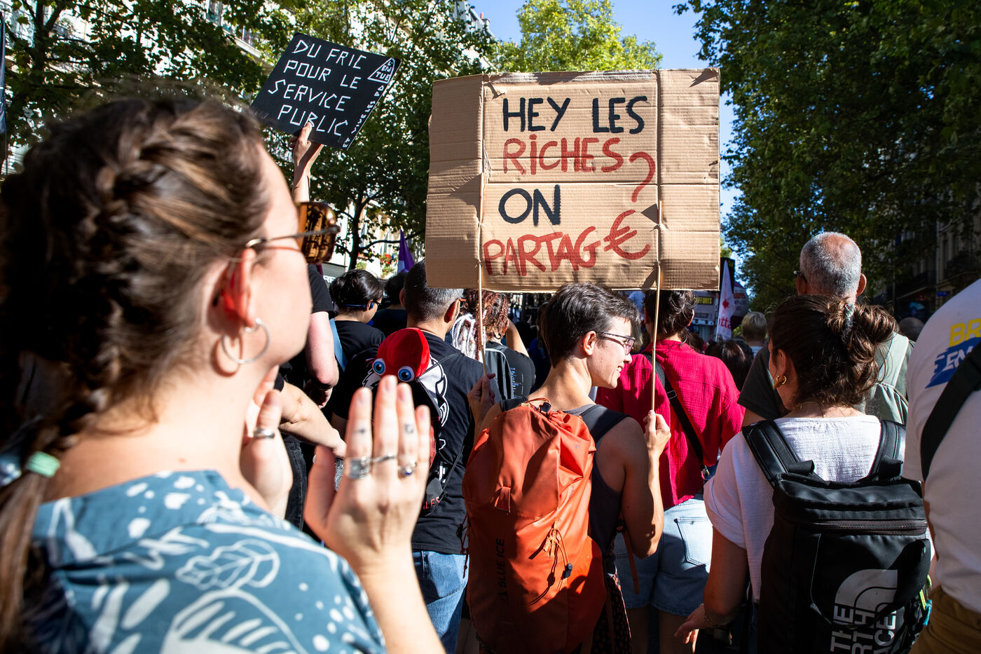 FRANCE, Paris, le 18 September 2025. Manifestation et greve a l appel de l intersyndicale contre les mesures d austerite budgetaire pour la defense des services publics et pour plus de justice sociale et fiscale.