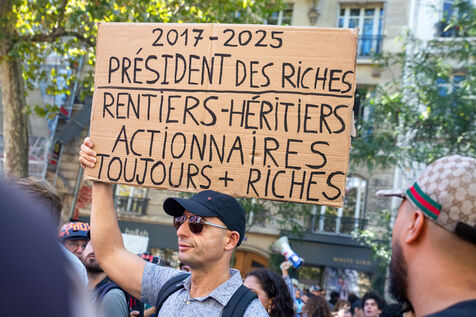 FRANCE, Paris, September 18, 2025. Demonstration and strike called by the inter-union coalition against budgetary austerity measures, in defense of public services and for greater social and fiscal justice.