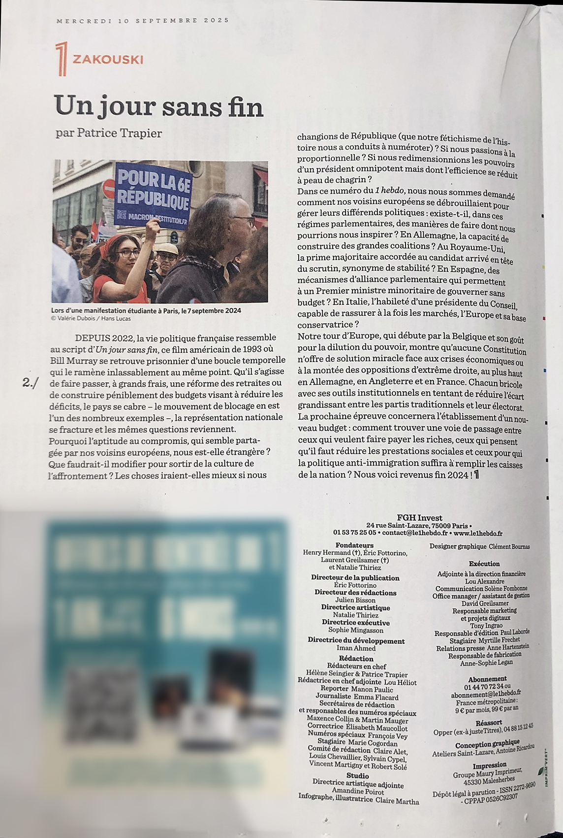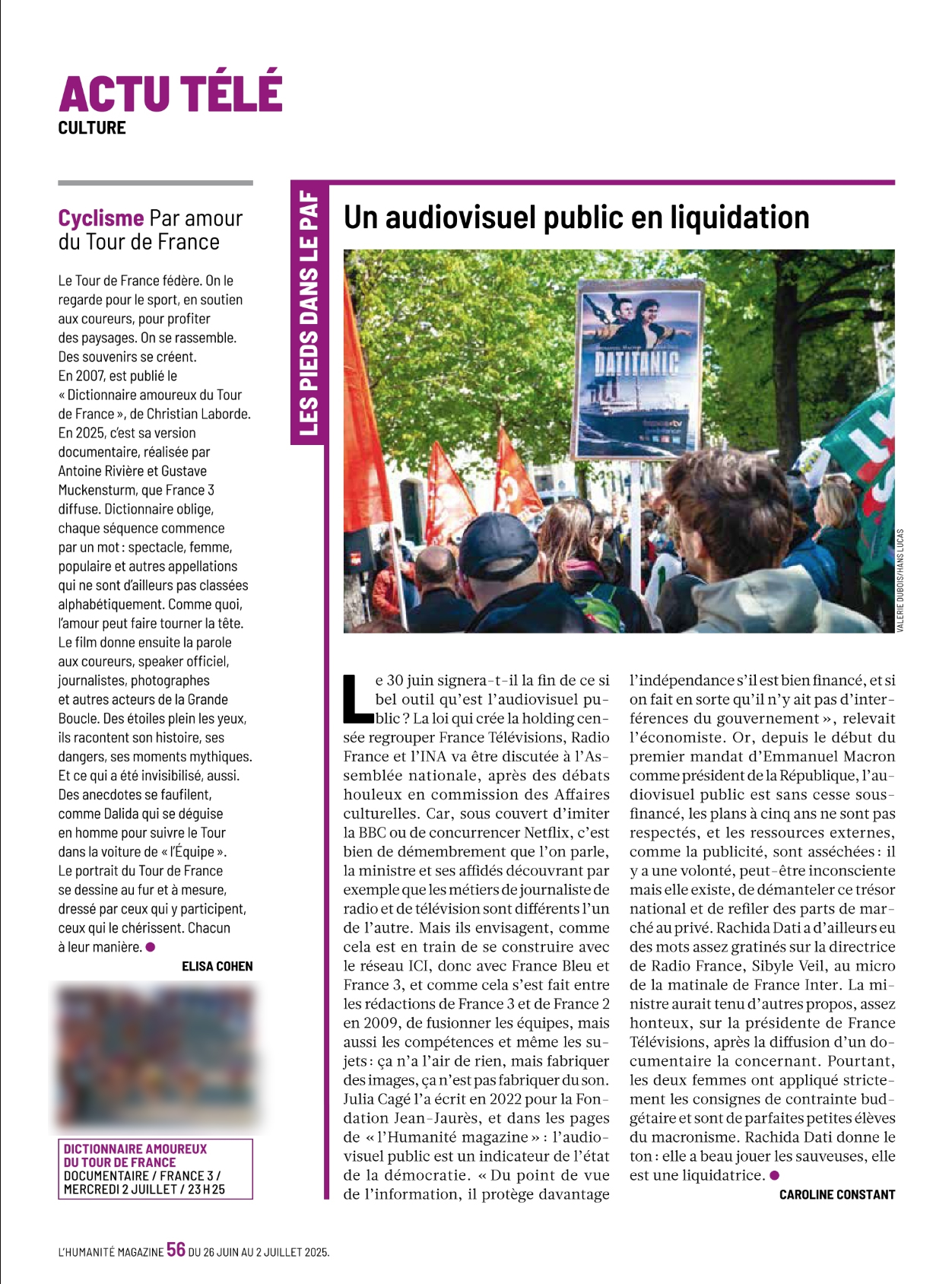 Valérie Dubois Publications Séries / Archive Culture — Environnement — Grand Ouest — Paris — Politique — Société — Spiritualité — Sport Sélection de séries Liberation du 29/09/2025 L'Humanité du 18/09/2025 Le 1 hebdo du 10 /09/2025 L'Humanité Magazine du 04/09/2025 Libération du 29/08/2025 Le Monde du 29/08/2025 Politis du 28/08/2025 L'Humanité du 28/08/2025 Le Figaro du 26/07/2025 Challenges du 10/07/2025 L'humanité du 30/06/2025 La Tribune du 28/06/2025 L'Humanité du 27/06/2025 Libération du 27/06/2025 L'Humanité Magazine du 26/06/2025 Libération du 20/06/2025 La Vie du 19/06/2025 L'Humanite du 17/06/2025 Le Parisien du 17/06/2025 Telerama du 28/05/2025