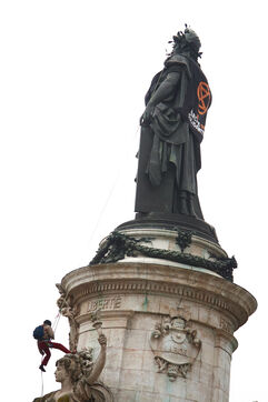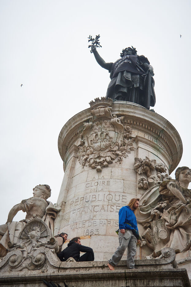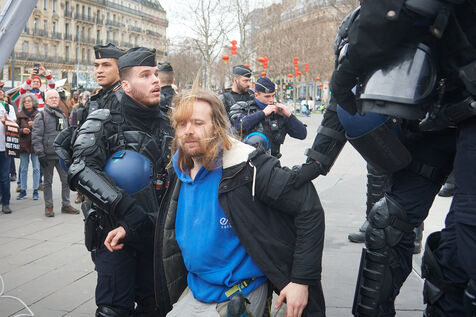 Manifestation parisienne contre la loi immigration de place de la République à Gambetta, sans heurts.