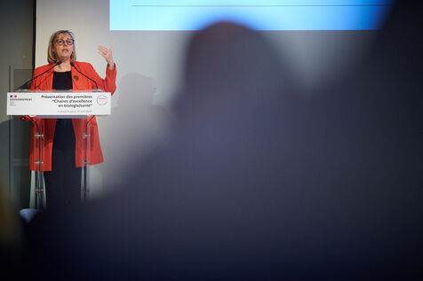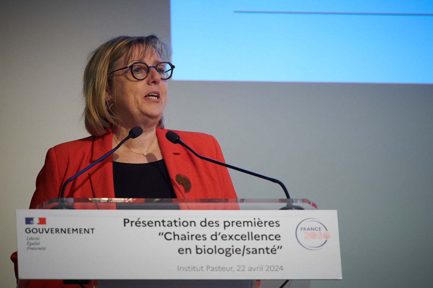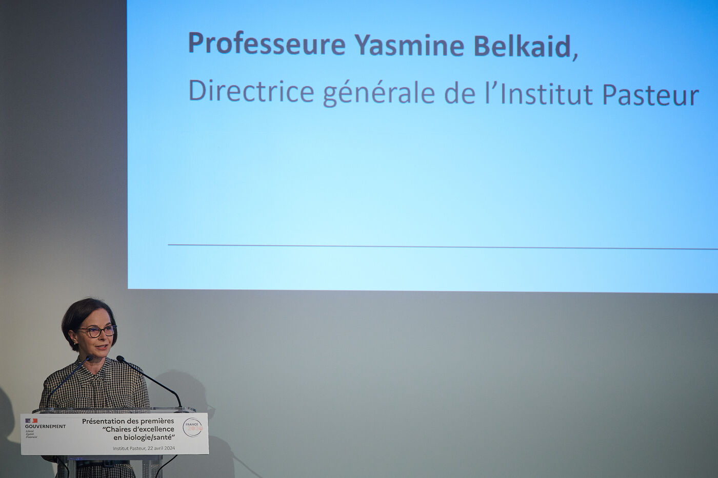 Selection of images of presentation of chairs of excellency in biology and health in the company of Yasmine BELKAID, directrice générale de l?Institut Pasteur, Sylvie RETAILLEAU, ministre de l?Enseignement supérieur et de la Recherche and Frédéric VALLETOUX, ministre délégué chargé de la Santé et de la Prévention, Pasteur institute, Paris