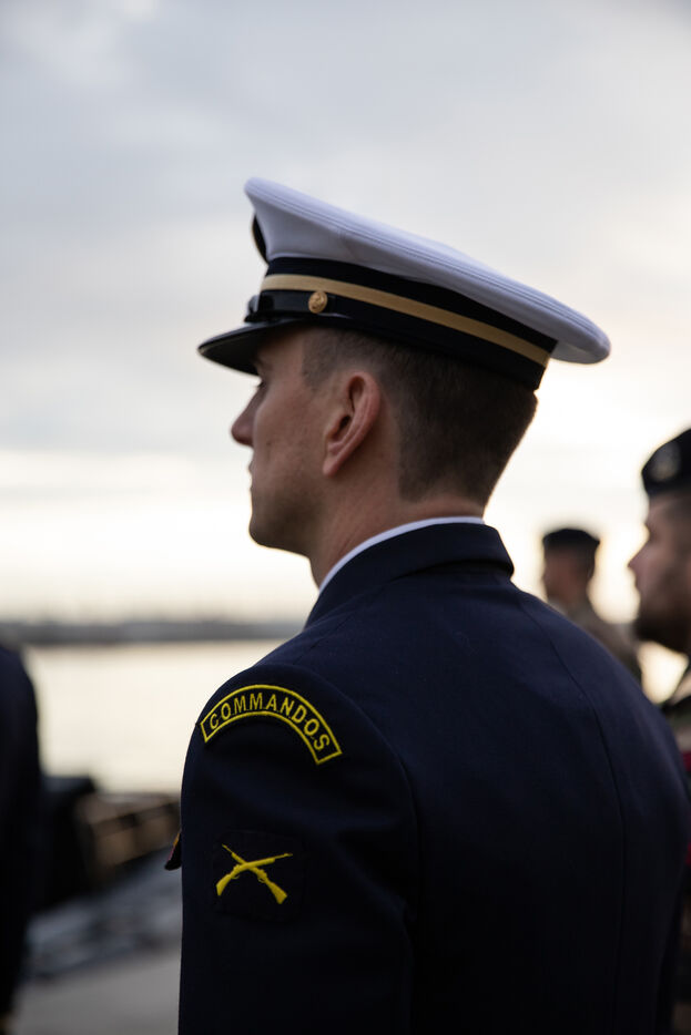 France, Brest, 2023-01-27. Naming ceremony of the Vedette de Fusiliers Marins Bir Hakeim on the naval base of Brest. Photograph by Vincent Feuray / Hans Lucas.