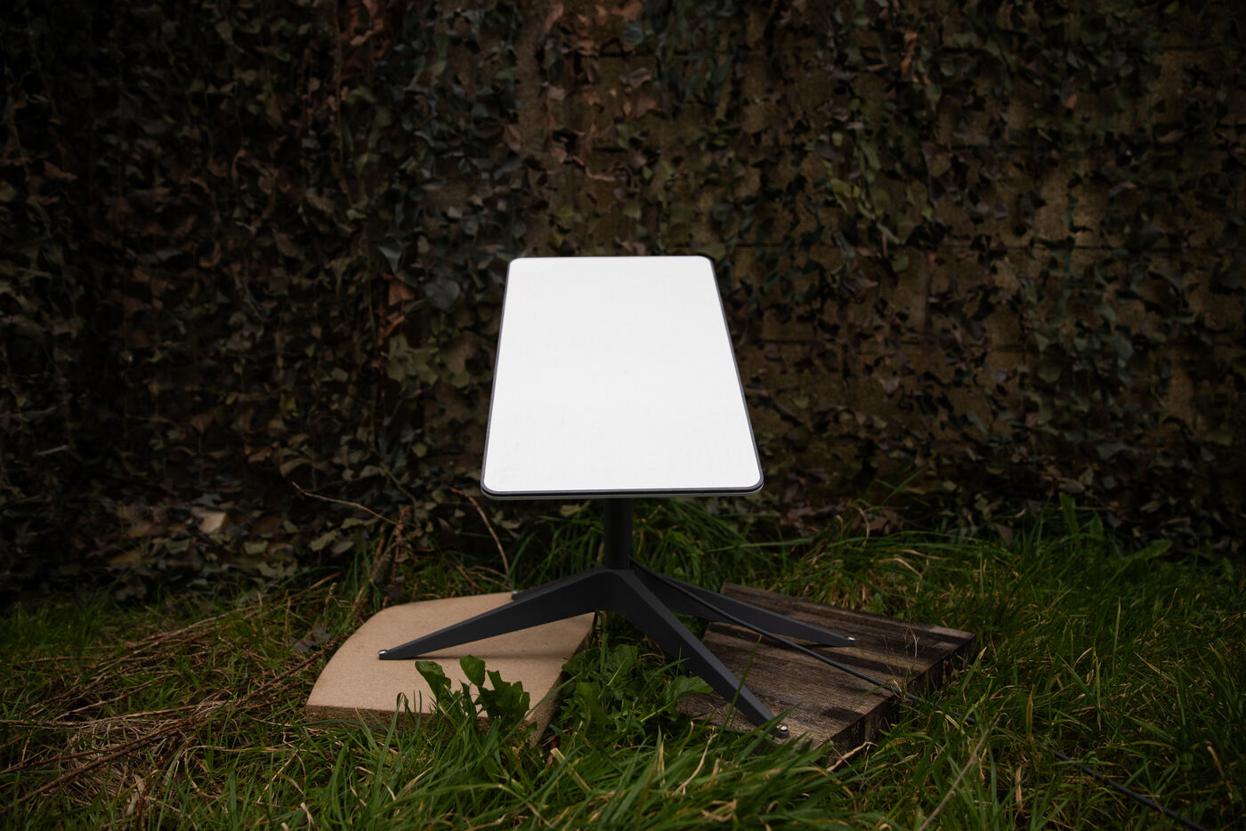 Après l'échange tendu entre Donald Trump et Volodymyr Zelenskyy, le risque d'arrêt de l'aide américaine et la possibilité d'une coupure des communications satellites via Starlink serait une catastrophe pour une armée ukrainienne mise à rude épreuve. Photographies d'illustration d'une antenne Starlink à Kerlouan en Bretagne, France le 01/03/2025.
