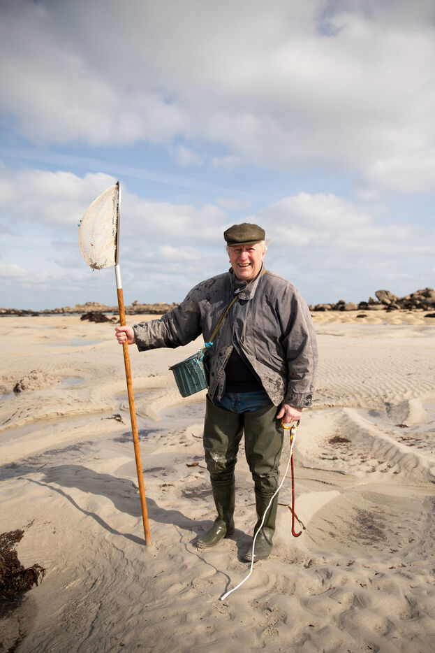 The storm season is over in Kerlouan. The sun is shining high in the skies over the Pagan region, which is once again enjoying the mild, calm days of spring. It's a calm day, with a tidal coefficient of 111, and the foreshore becomes a meeting place for fishing enthusiasts. The idyllic Breton Caribbean landscape is transformed into a maze of sand and granite with well-kept secrets. By chance, I meet 86-year-old Yves and his friend Christophe. They agreed to let me follow them, but the tide doesn't wait, and you can't wait for a photographer. You have to keep up the rhythm, the progress is laborious but the gestures are always sure, methodical, handed down from generation to generation. They know every rock, and the nourishing ocean richly rewards the self-sacrifice of these trackers of the sea. Soon the Grail is found, abalone in hidden crevices or a lobster flushed out of its hole.