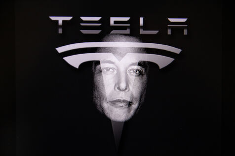 Photographies d'illustrations en double exposition d'Elon Musk et du logo de son entreprise Tesla.