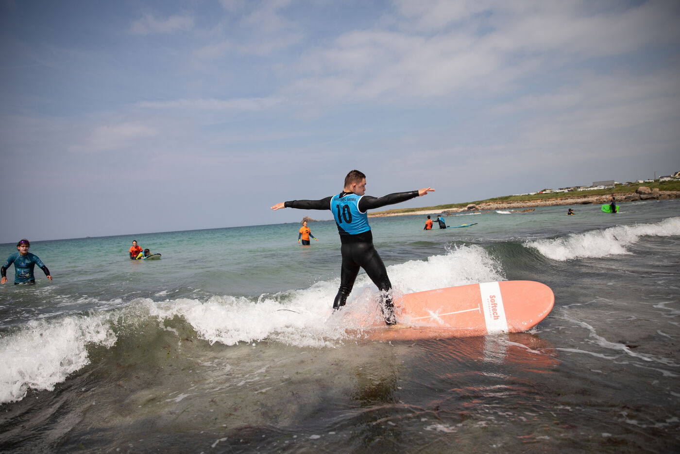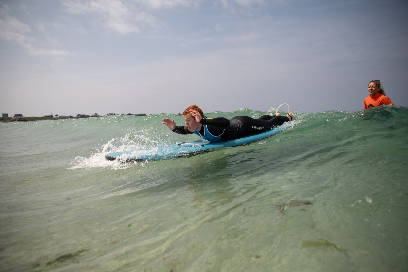 Nous sommes le lundi 09 juin 2025, deuxième journée Handi Surf pour le surfing des club des Abers à Plouguerneau et son président Gwen Renambot. L'évènement rassemble plus de 25 personnes en situation de handicap, les coachs du club, des éducateurs et une quarantaine de bénévoles en partenariat avec la ligue de surf de Bretagne. Alors que le surf a atteint le premier cercle des disciplines sportives aux derniers jeux Olympiques d'été de 2024, se révélant au monde, ce sport en harmonie avec les éléments permet ici depuis longtemps au plus grand nombre de profiter de sensations uniques. Le rendez-vous est pris sur le spot de la Grève Blanche, la petite troupe est au complet. Chacun se prépare, enfile une combinaison avant de se diriger vers la plage. L'ambiance et la marée commencent à monter, l'atmosphère est studieuse, l'échauffement obligatoire pour préparer les corps avant une plongée dans le grand bain. Les premières sensations sont fortes, l'accompagnement essentiel pour faire passer les premières appréhensions. Ici que nous soyons en situation de handicap moteur, mental, sensoriel ou bien valides, nous sommes tous égaux face à l'océan, ce terrible océan qui calme la houle colérique des émotions et des douleurs. Le cap est vite franchi, la magie opère et c'est l'osmose avec les éléments. La quête de la vague devient une obsession, la recherche de la technique indispensable sous les conseils avisés des coachs et rapidement ce sont les premières prises de vagues, la joie d'un exploit sportif accompli, les professionnels de l'équipe de France de surf n'ont qu'à bien se tenir, la relève est assurée.
