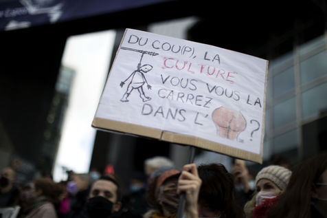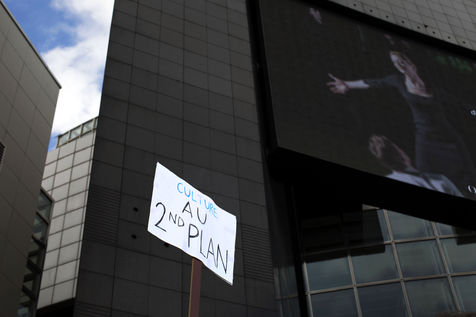 After the government's decision not to reopen cultural venues because of the Covid-19 epidemic, thousands of demonstrators expressed their anger in the Place de la Basille in Paris on 15 December 2020.