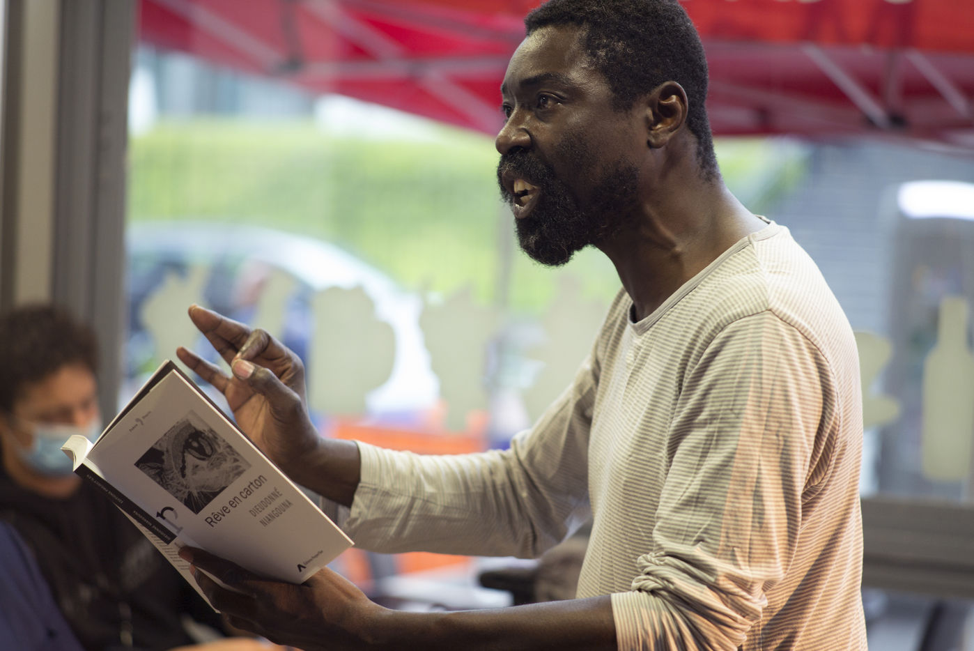 The 2021-2022 season of the Théâtre des Quartiers d'Ivry started at the end of September 2021 with a weekend of festivities. In the bar Le Marat, in Ivry-sur-Seine, the poet and director Dieudonné Niangouna read extracts of poems from his collection entitled "Rêve en carton", to music by Pierre-Jean Rigal, known as Pidj.