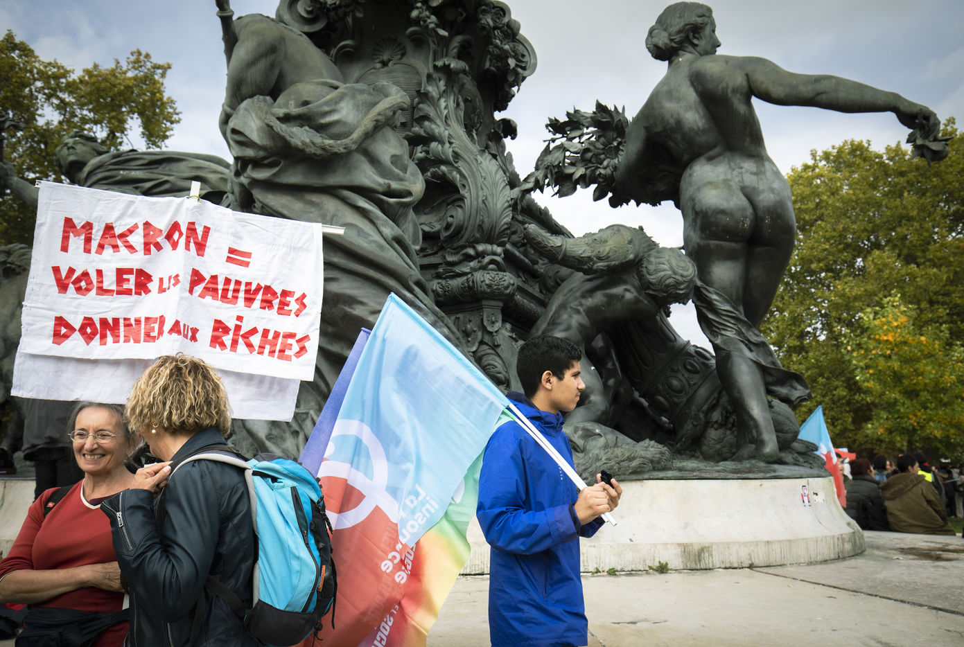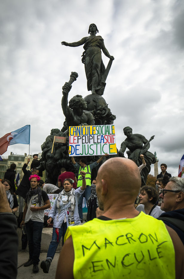 The New Popular, Ecological and Social Union organised a demonstration against the high cost of living and climate inaction on Sunday 16 October 2022, between Place de la Nation and Place de la Bastille in Paris.