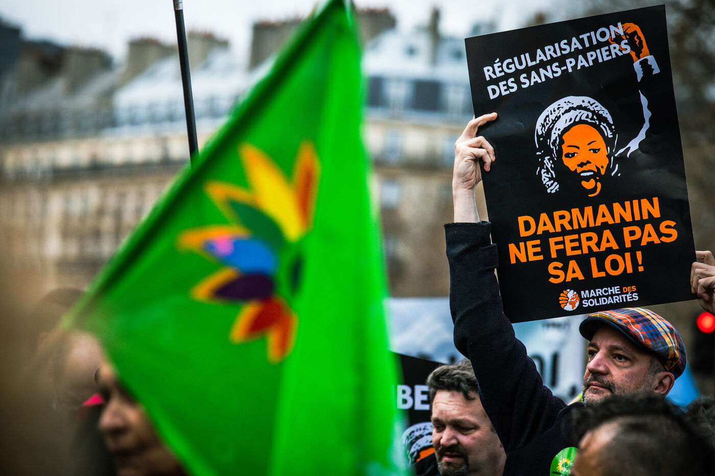 Thousands of demonstrators marched in the streets of Paris on Saturday 25 March 2023 against the Darmanin law and to demand the regularisation of undocumented migrants.