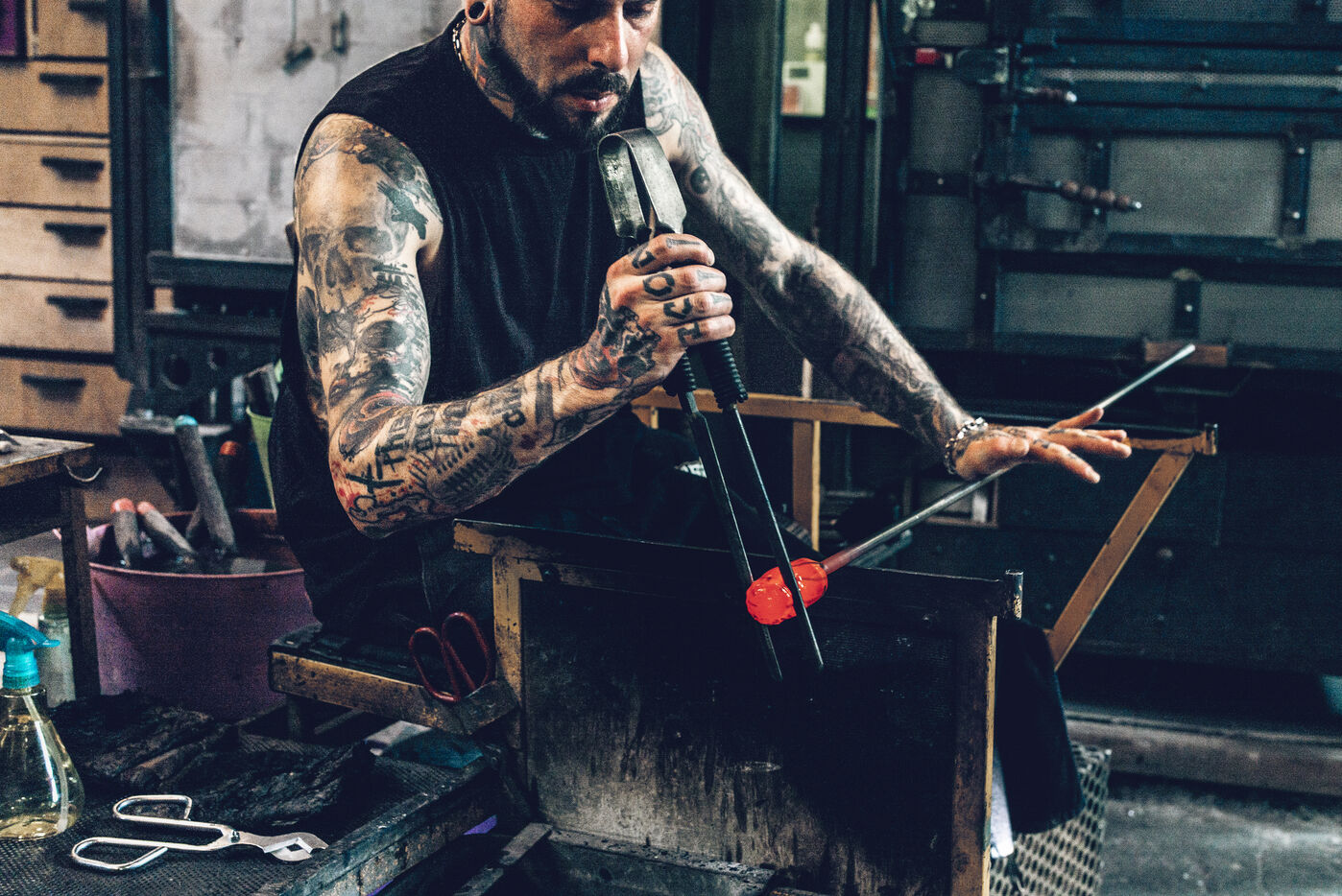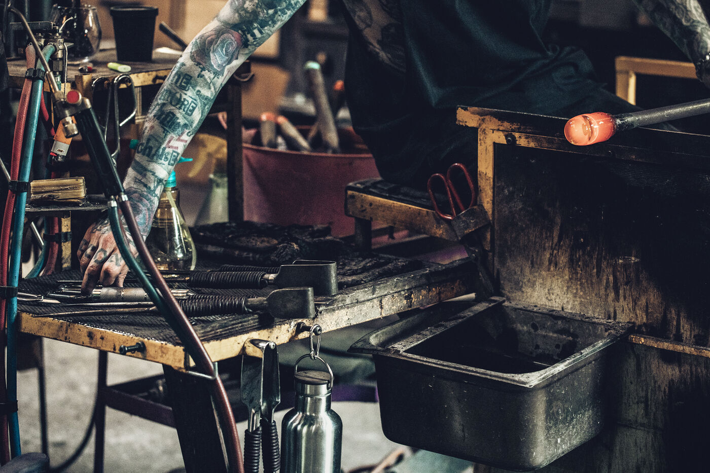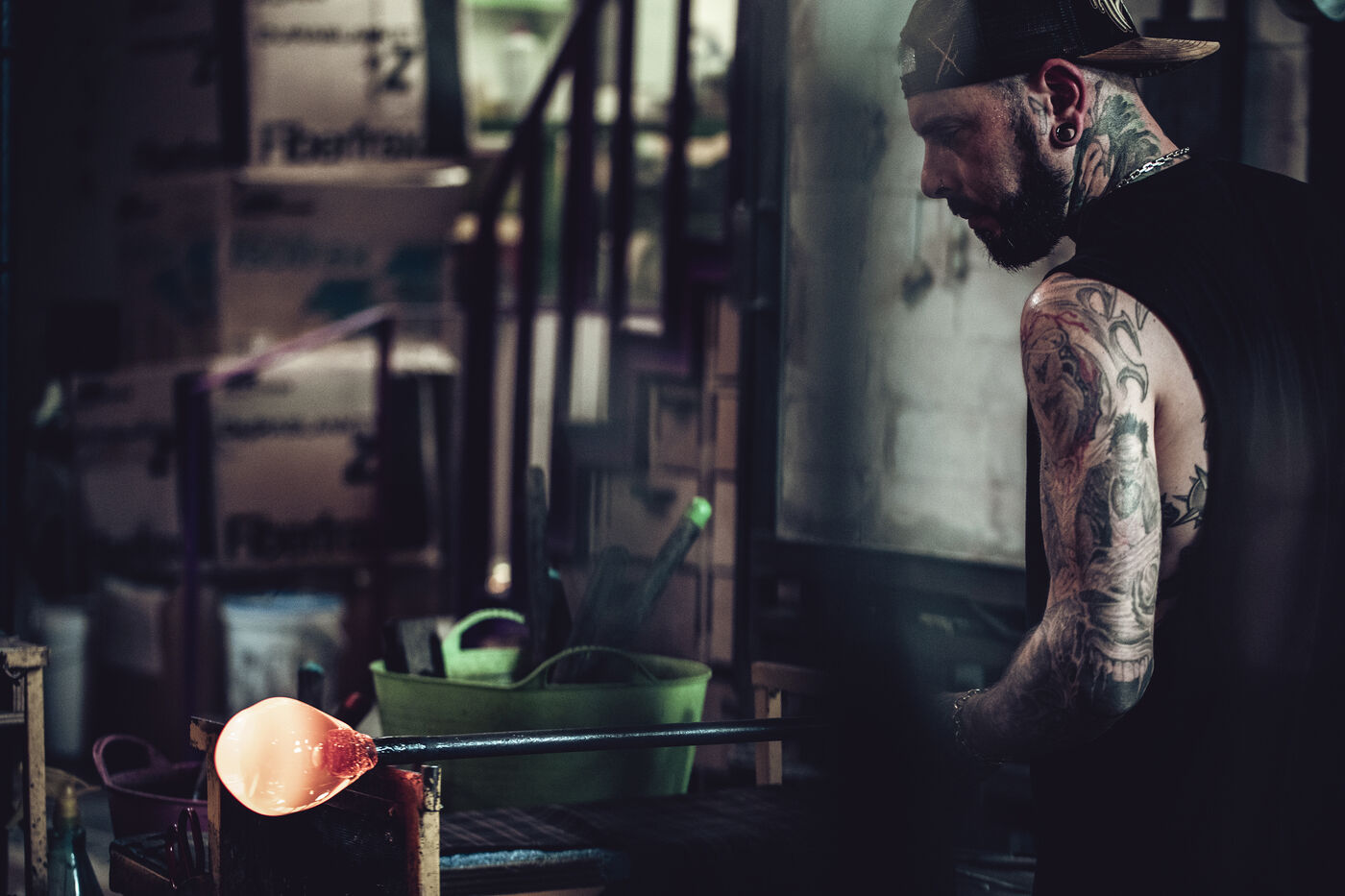 Dans son atelier situé à Arcueil, en région parisienne, Thomas Segaud, artisan verrier depuis plus de vingt ans, façonne des pièces de verre en fusion, à 1 200 degrés. En 2013, il crée sa propre marque : Glass Sabbath.