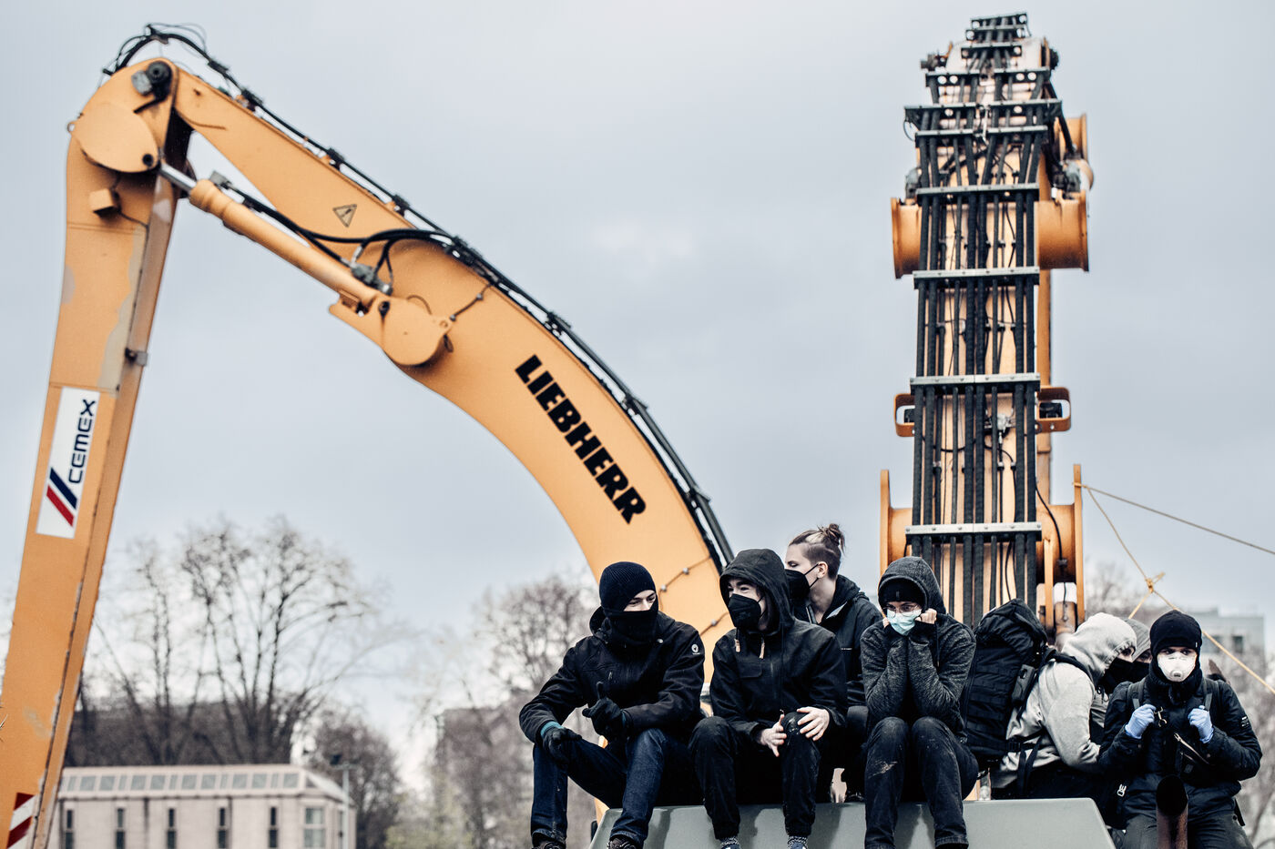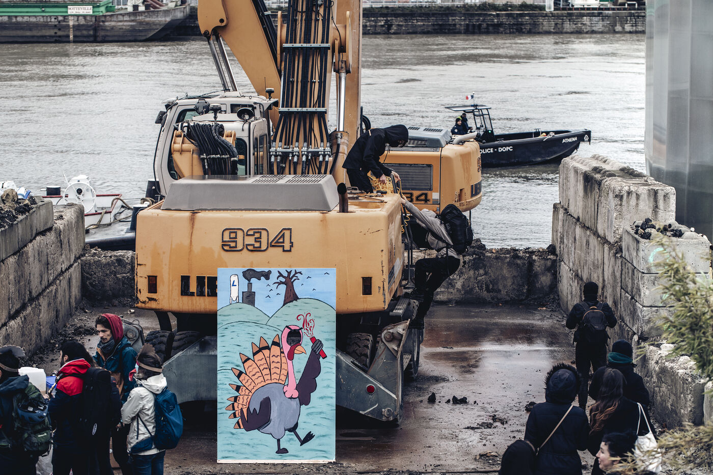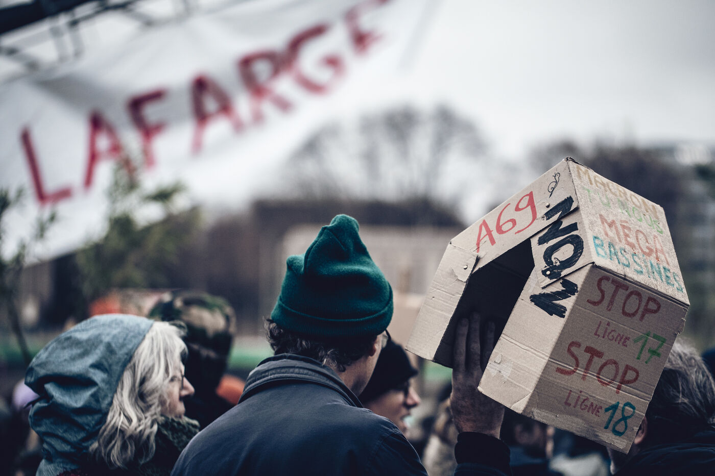The environmental collective Les Soulèvements de la Terre has organised days of action in several French towns against the production sites of cement manufacturer Lafarge-Holcim, accused of artificialising land and polluting the environment through its cement works and concrete plants. Paris, 11 December 2023.