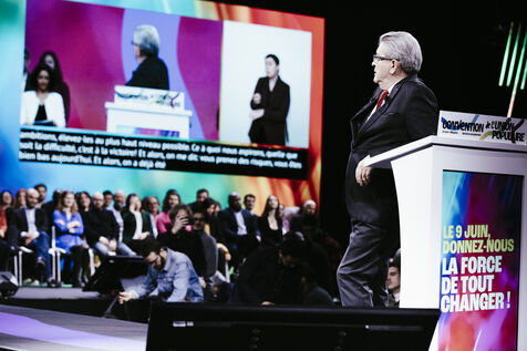 France insoumise launched its campaign for the European elections at a meeting in Villepinte, Seine-Saint-Denis, on Saturday 16 March 2024. List leader Manon Aubry made official the symbolic presence of Jean-Luc Mélenchon in the campaign.