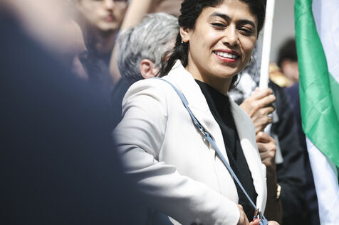 Activists from the left-wing movement La France insoumise gathered at Place de la Bastille on Saturday 8 June 2024 to demand France's recognition of the Palestinian state and an immediate ceasefire in the Gaza Strip. Among the marchers were French-Palestinian lawyer Salah Hamouri, who was expelled from Israel last December, and lawyer Rima Hassan, who was seventh on the LFI list for the European elections.