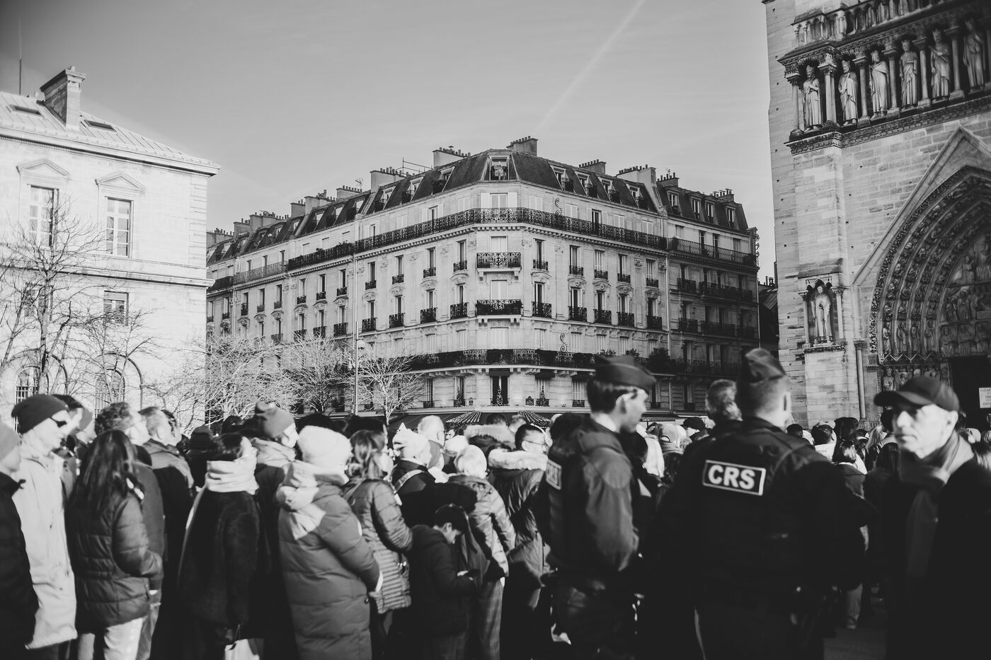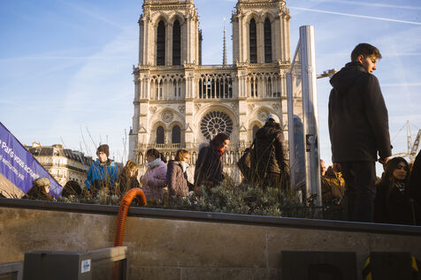 In front of the cathedral, which has been open to the public since 7 December after more than five years of renovation work, visitors flock to see the restored interior.
