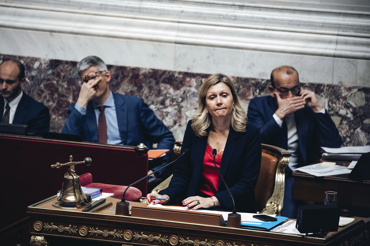 Public session at the Palais-Bourbon, the day after Marine Le Pen, President of Rassemblement National, was sentenced to 5 years ineligibility.