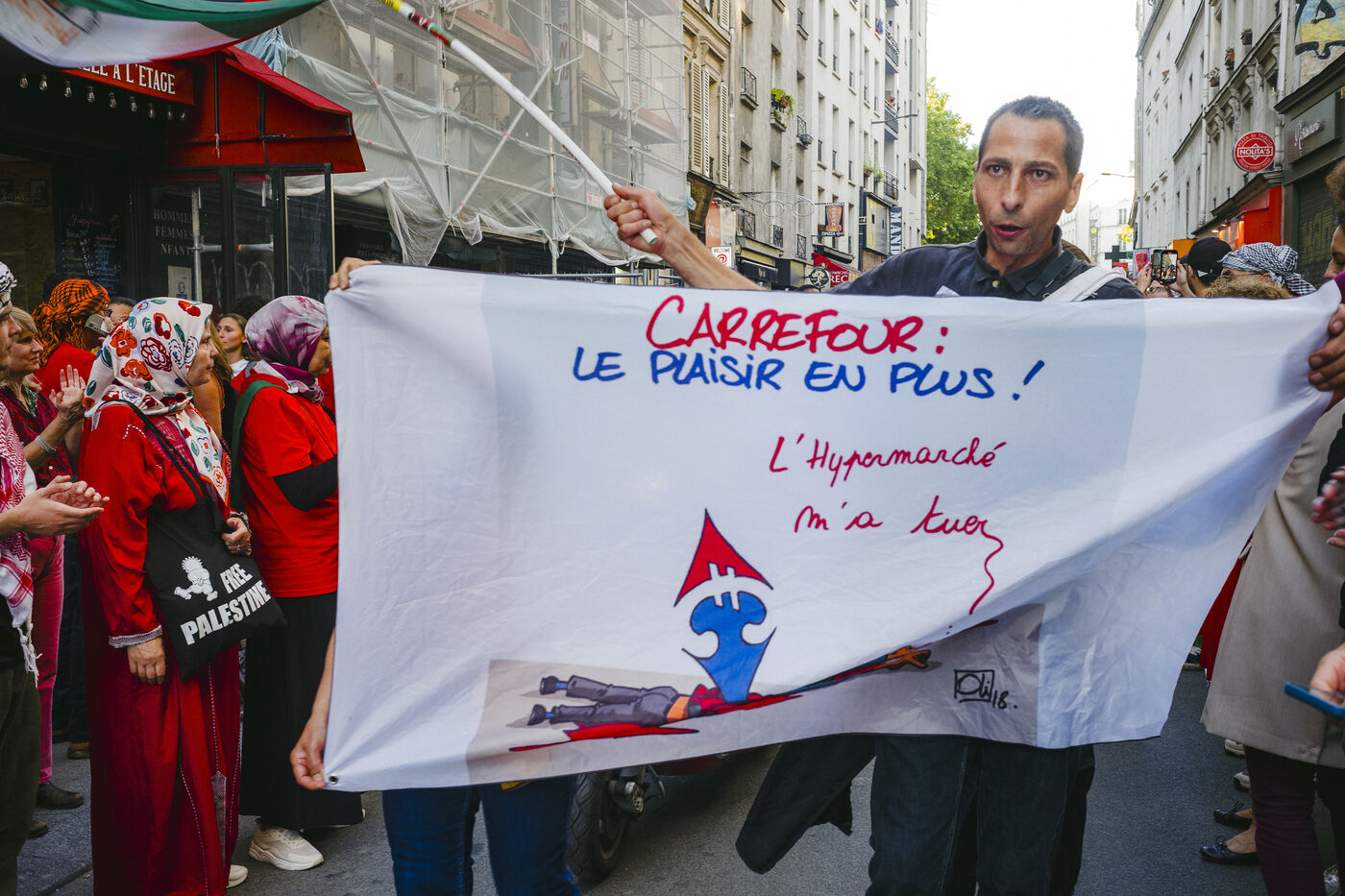 Since October 2023, the population of the Gaza Strip has been subjected to relentless bombardment by the Israeli army. To symbolize all the red lines that have been crossed, protesters dressed in red marched in support of Palestine on Tuesday, October 8, 2025, in Paris.