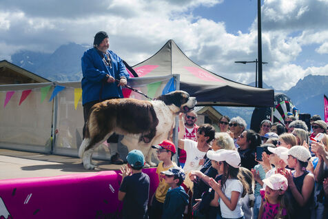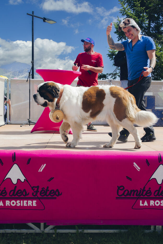 Défilé de chars, folklore savoyard, costumes traditionnels et concours d'élégance de chiens saint-bernard à La Rosière, en Savoie, les 2 et 3 août 2025.