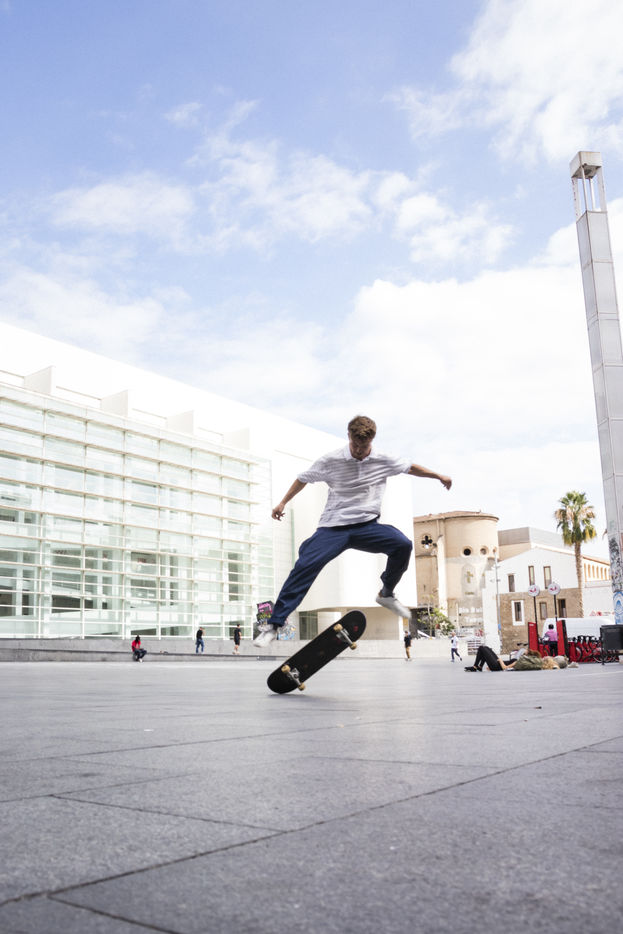 The MACBA is certainly the most famous skateboard spot in the world. Located in the heart of Barcelona in the Raval district, at the foot of the eponymous museum, it is THE crossroads of skateboard culture. Before being a "spot" and a museum, the MACBA is above all a spirit. Here, the greatest "street" skaters mix with amateurs. In this series you will find Will Ocean Odiete, skater at Vans.