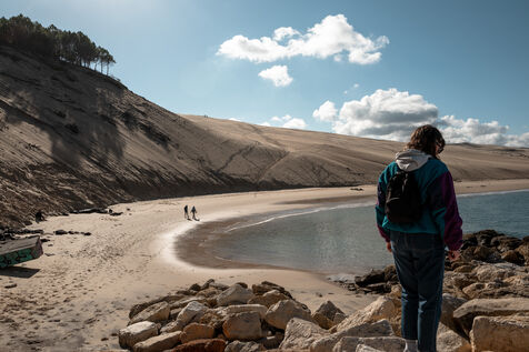 Dans ce haut lieu du tourisme français, on peut apercevoir des touristes profitant du calme de la période hors saison. On voit aussi les bois qui ont été ravagés par les feux en 2022.