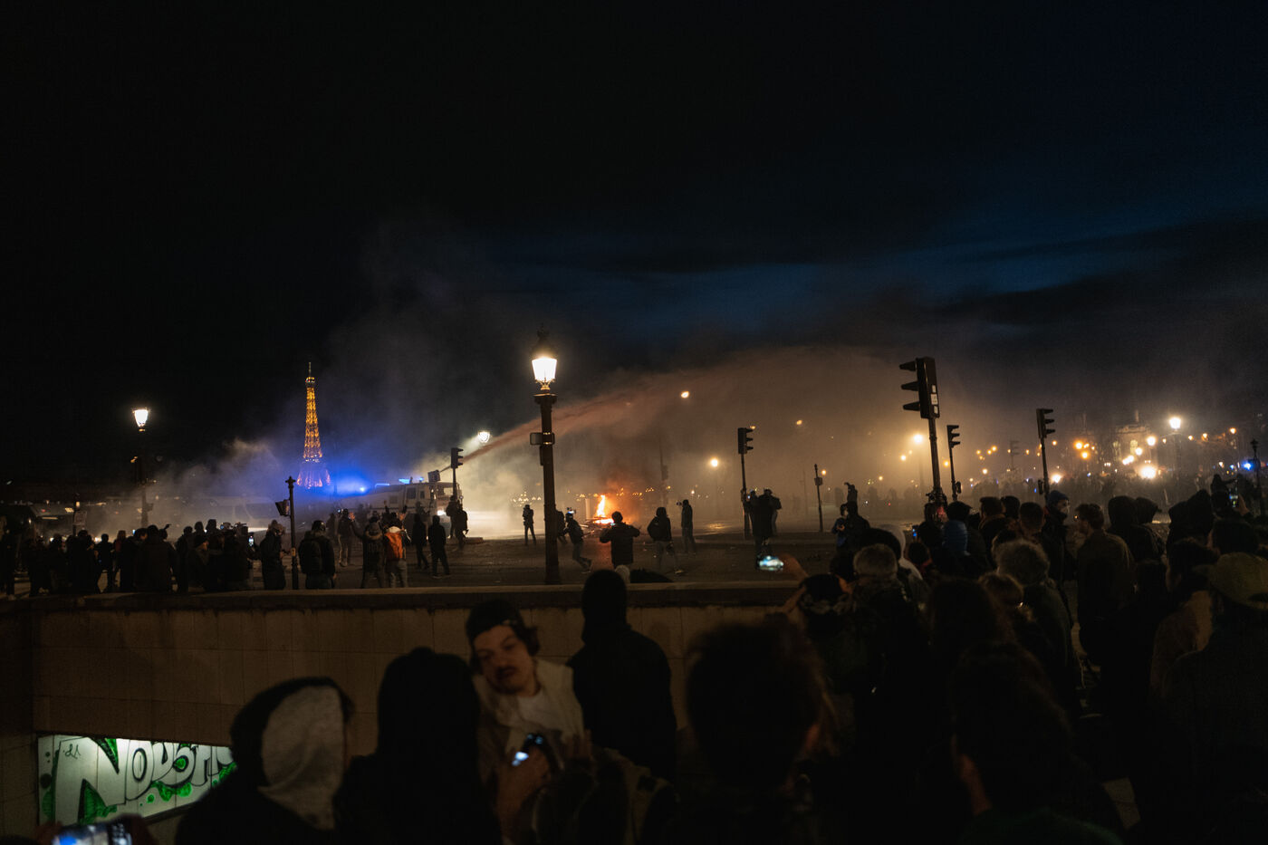 Des milliers de manifestants se sont réunis place de la Concorde à Paris, où de nombreuses forces de l'ordre étaient présents. La manifestation s'est dispersée et poursuivie dans les rues alentours. Des barricades ont été dressées et des déchets présents en nombre à cause de la grève des éboueurs contre la réforme des retraites ont été brulés.