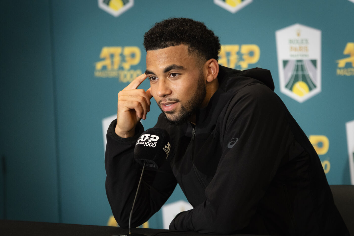 Arthur Fils en conférence de presse le mardi 31 octobre à l'Accor Arena après sa défaite contre Daniel Altmaier au premier tour du Rolex Paris Masters.