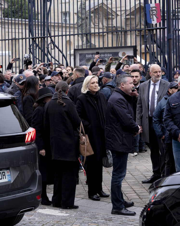 Supporters of Jean Marie Le Pen paid tribute to the far-right politician at a mass held in the Val de Grâce church in Paris. Many far-right personalities were present.