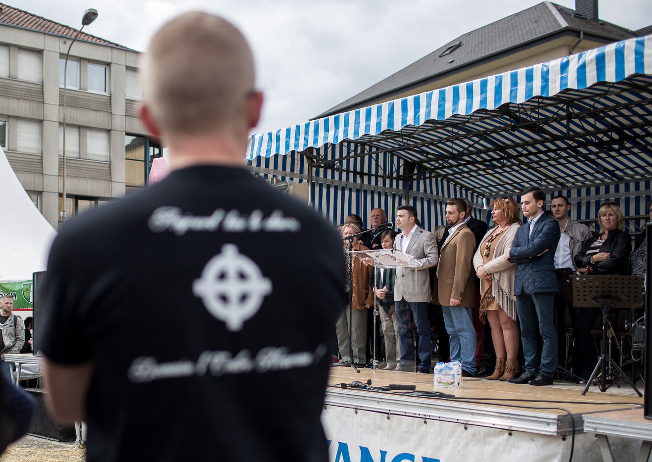Pour la deuxième année, le maire FN d'Hayange organisait une fête du cochon. Sur la place de la mairie, les hayangois étaient encore plus nombreux que l'année précédente. Mais ils n'étaient pas seuls. De nombreux militants du groupuscule d'extrême-droite Lorraine Nationaliste ou dissidents du Front National avaient également répondu présent.