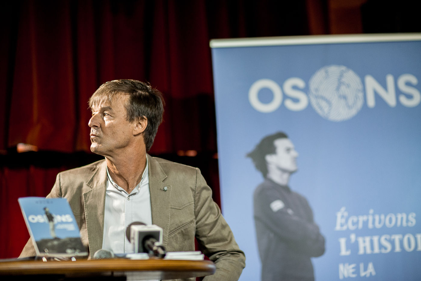 Nicolas Hulot , Président de la Fondation Nicolas Hulot pour la Nature et l?Homme a présenté mercredi 7 octobre à l'Entrepôt son livre-manifeste : OSONS Plaidoyer d'un homme libre - Editions Les Liens qui Libèrent.