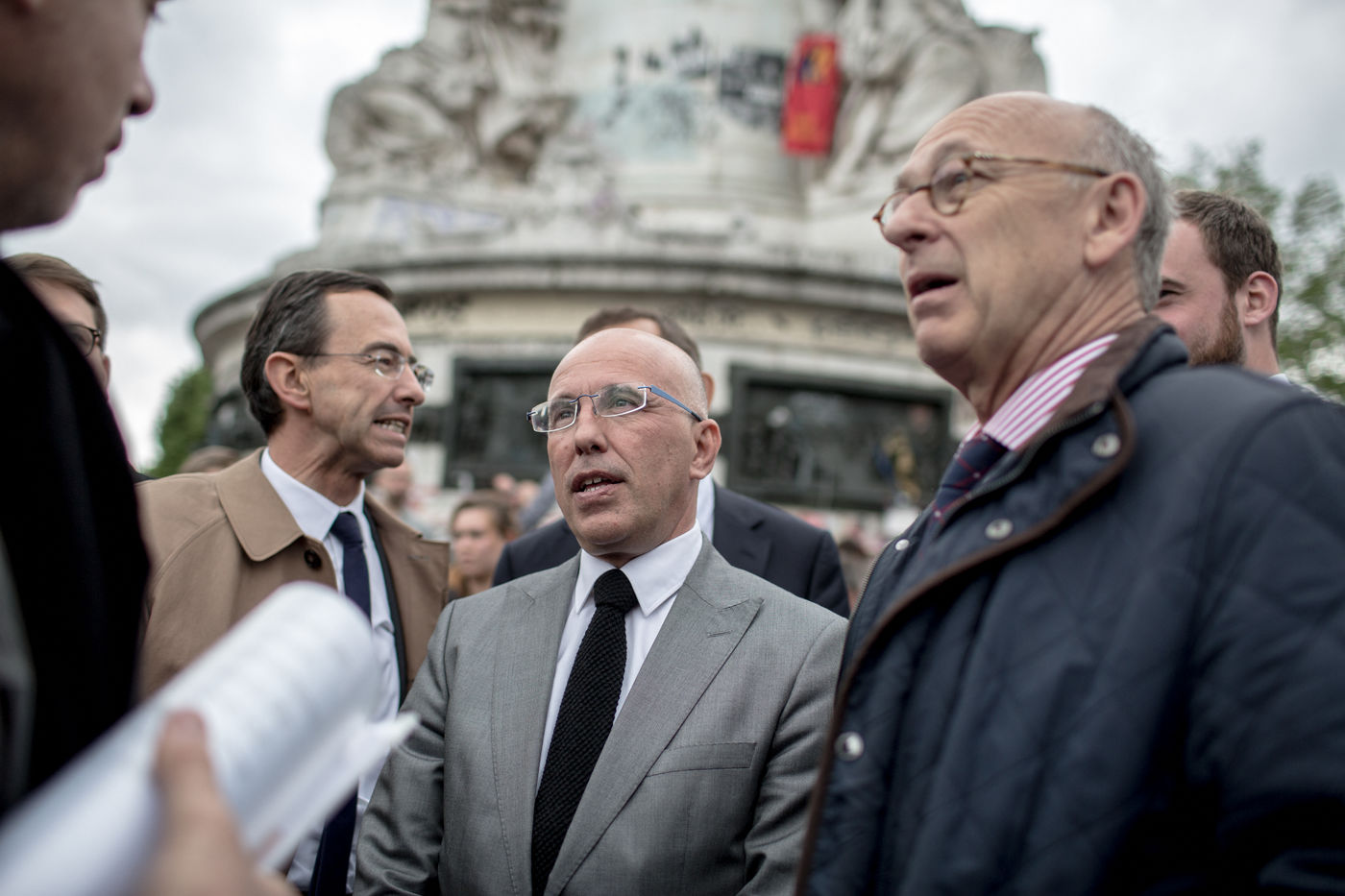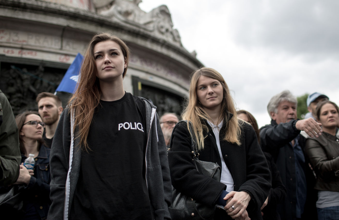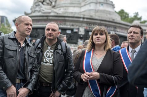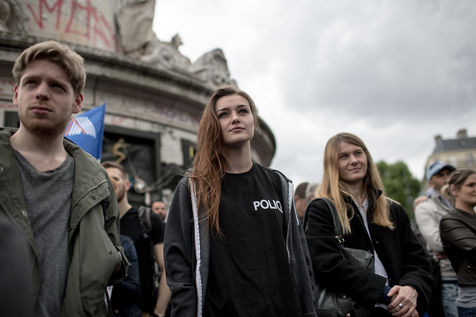 Les policiers ont manifesté, mercredi 18 mai, pour dénoncer la « haine anti-flics » et demander plus de « fermeté » vis-à-vis des « casseurs » ? une première après deux mois d?affrontements parfois violents lors des manifestations contre le projet de loi travail. Le député Les Républicains Eric Ciotti ainsi que les députés Front national et apparenté, respectivement Marion Maréchal-Le Pen et Gilbert Collard, étaient présents sur la place. La nièce de Marine Le Pen s'est prêtée au jeu des selfies avec nombreux policiers grévistes.