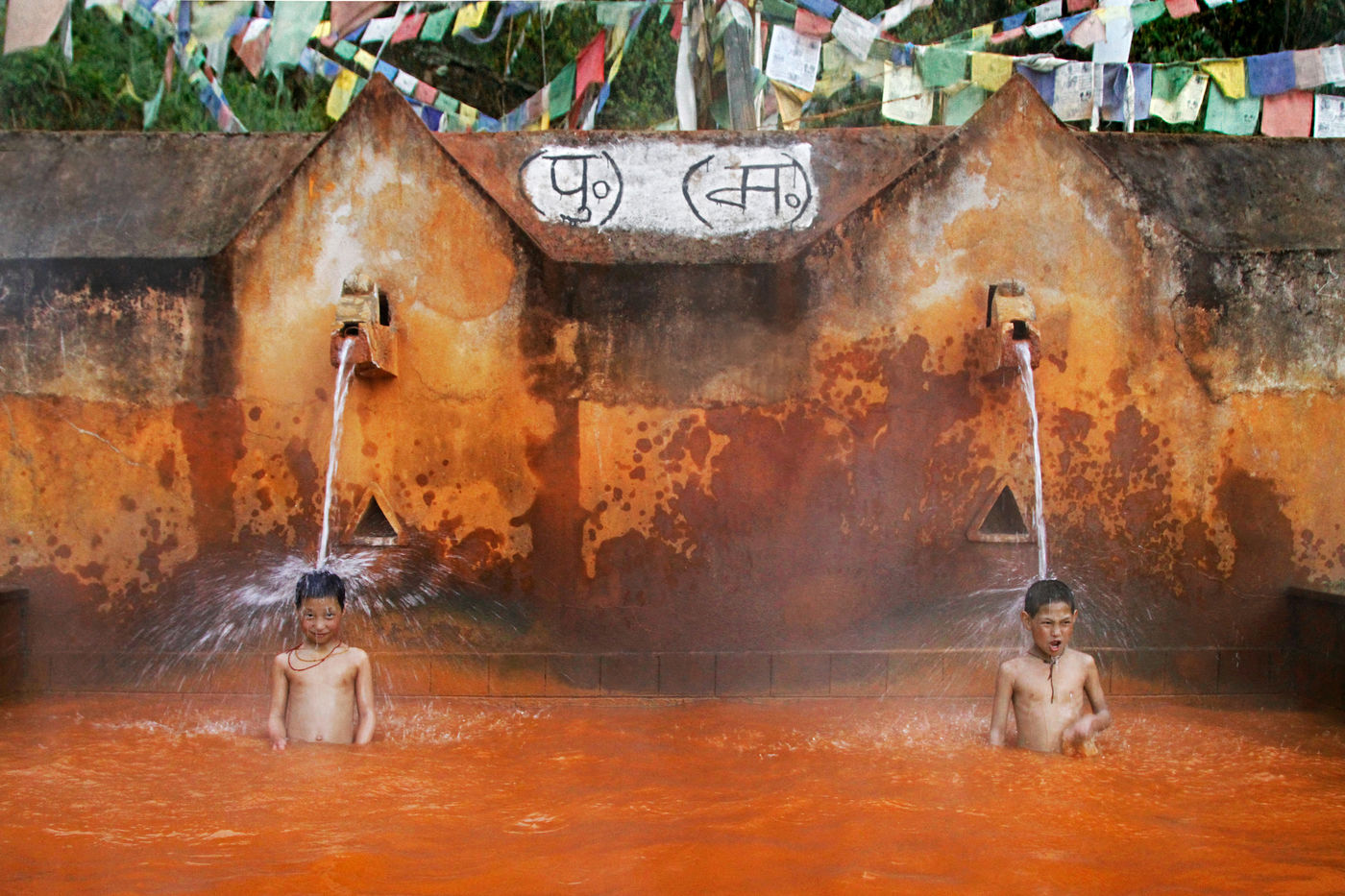 Somewhere in the Himalayas, 40°C water sprang up from the side of a mountain, giving birth to the sacred springs of Tatopani. The red and ferruginous waters of this thermal resurgence had medicinal and purifying virtues according to the Nepalese and the Indians who went there on foot from regions sometimes very far away. Every year, thousands and thousands of Buddhist and Hindu pilgrims traveled here to heal a disease of their soul or body. Before their destruction by the April 2015 earthquake in Nepal, these unique sources in the world were located in a small mountain village accessible only by a footpath, the village of Tatopani whose houses are built of wood. Perched at 2600 m in the Tamang region, these springs were a focal point of the "Tamang Heritage Trail", a major hiking trail in this part of the Himalayas surrounded by snow-capped peaks at over 7000 meters (the source is near the Langtang Lirung massif). In addition, these sources were also used for everyday life: cleaning vegetables, baths, laundry, irrigation ... This photographic series illustrate what were the hot springs of Tatopani before they dried up after the powerful earthquake of 2015 that changed the configuration of the bowels of the Earth.