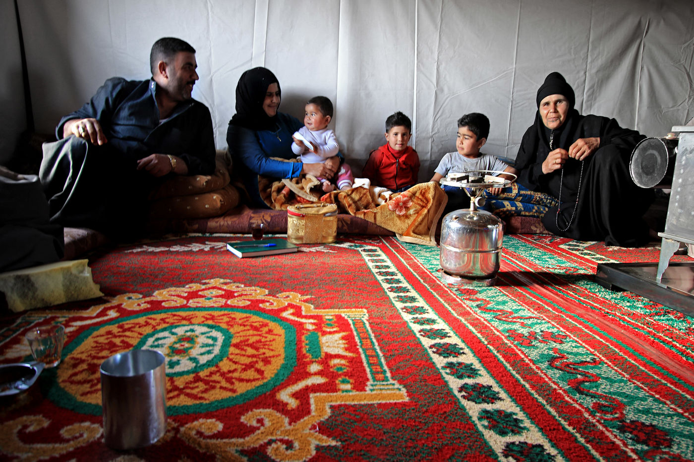 Les familles ont été photographiées lors de rencontres informelles, sans aucune forme de mise en scène ni indication donnée aux personnes photographiées. Mon intention était de montrer comment les réfugiés réussissent à recréer un sentiment de bien-être en dépit de leur condition tragique, nous donnant par là même une leçon d'humanité.
