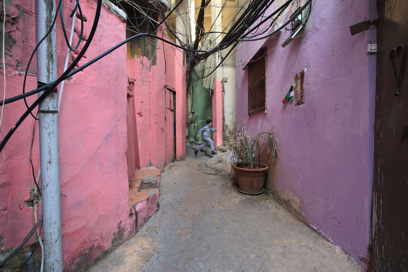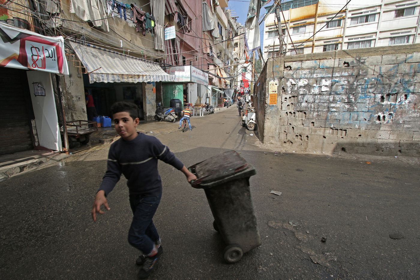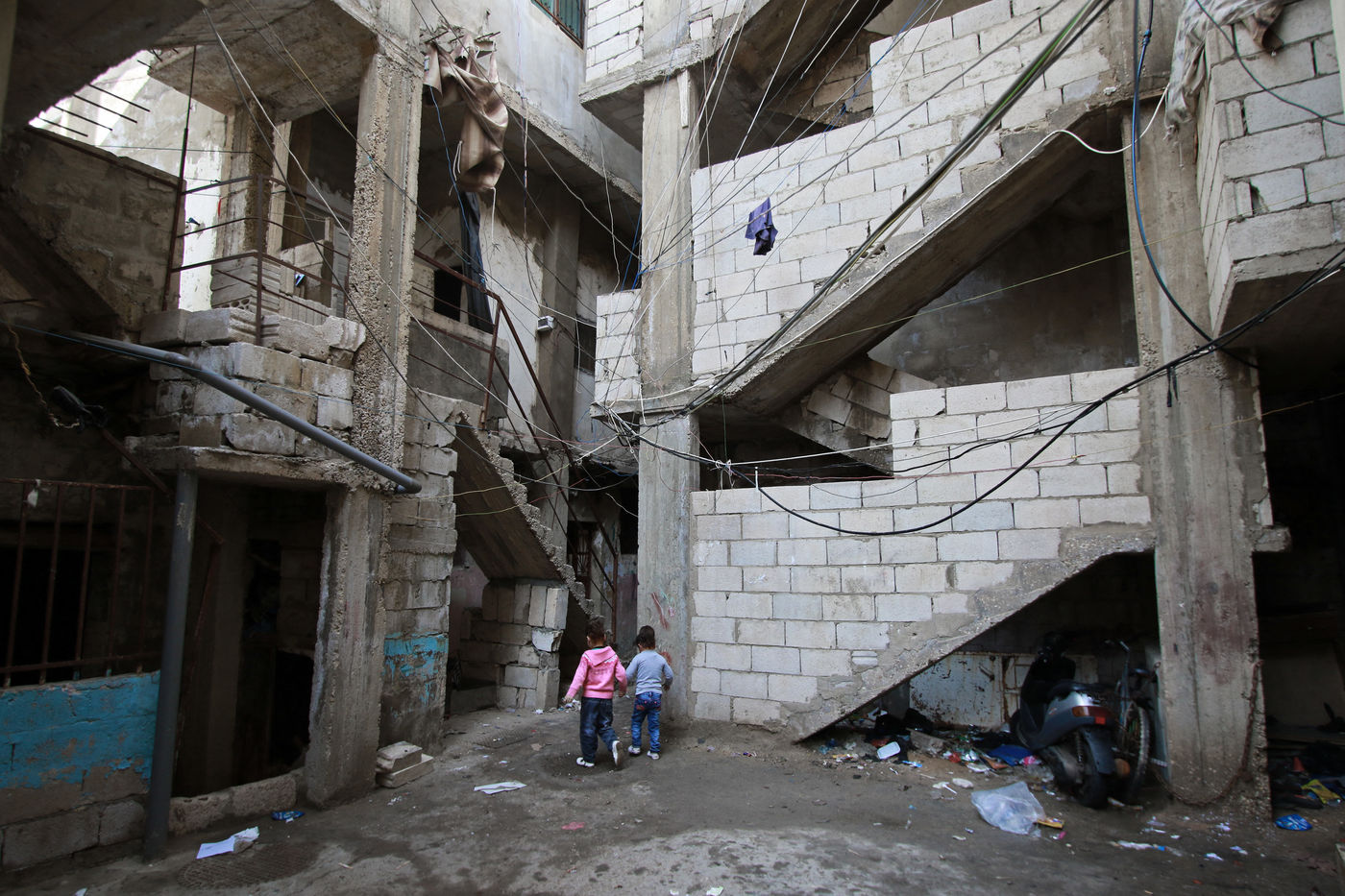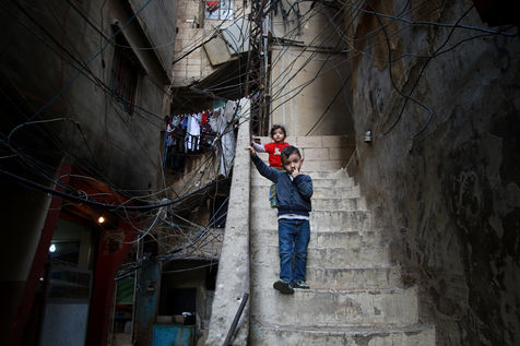 In these anarchic and chaotic slums (veritable autonomous cities in the heart of Beirut), children grow up in disastrous infrastructures. Above the narrow streets hangs a tangle of high-voltage cables that sometimes carry no power for up to 16 hours a day. The camp is hopelessly overcrowded, and every year many refugees die by electrocution or in the collapse of their homes. Although this situation has been repetitively denounced by several international NGOs, the living conditions of the refugees have not changed in the last three decades, according to the UNHCR, the United Nations Refugee Agency.