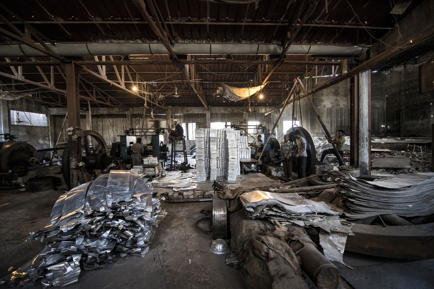 Les fabriques d'aluminium sont nombreuses au Bangladesh où différents types de pots et de marmites sont fabriqués à partir d'aluminium recyclé et fondu. Pour produire une casserole, un bol, une marmite ou une bouilloire en aluminium on doit tout d'abord fondre cet aluminium, le transformer en lingots, le laminer puis le découper en disques. Vient ensuite, l'anodisation, un procédé chimique afin d'éviter que les objets ne rouillent. On trempe les disques d'aluminium dans de l'acide sulfurique puis dans de la soude caustique. Le travail est dangereux et toxique. Les disques sont ensuite formés à la force des bras sur des machines rotatives pour obtenir les ustensiles de cuisine. La touche finale est le polissage au papier de verre que l'on fixe sur ses mains et sur ses pieds.