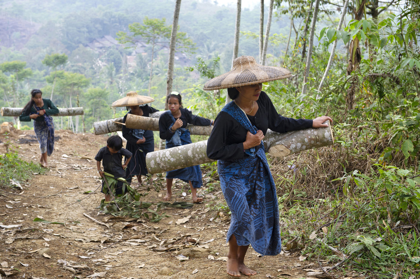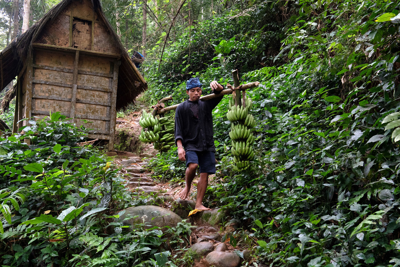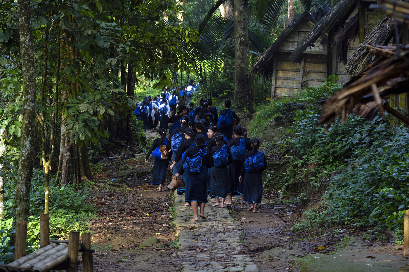 In Indonesia, in the province of Banten to the west of Jakarta, the Baduys voluntarily live away from the modern world since the 16th century from within a tropical forest in a protected region of more than 5000 hectares. They respect the Pikuku, a system of more than 600 strict rules. Everything that is modern is taboo. Electricity is banned, government education, the change of the course of a river, the soap, the shoes ... They apply the concept of no change or the least possible change: "what is short must not be lengthened, what is long should not be shortened ". When they cut a tree, they have to plant another one the same day. They grow rice for food and depend only on rain for its cultivation. Their forest has remained intact since their arrival in the region.